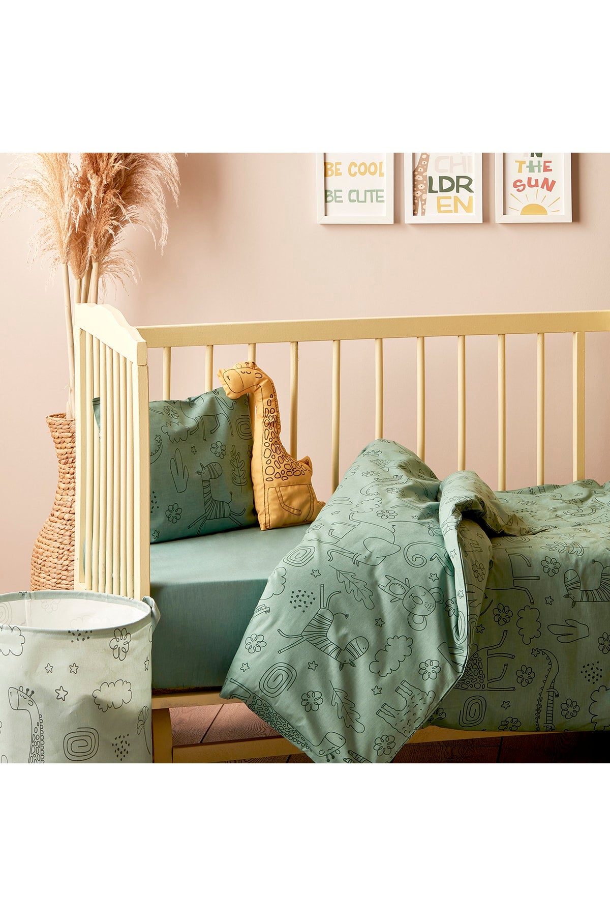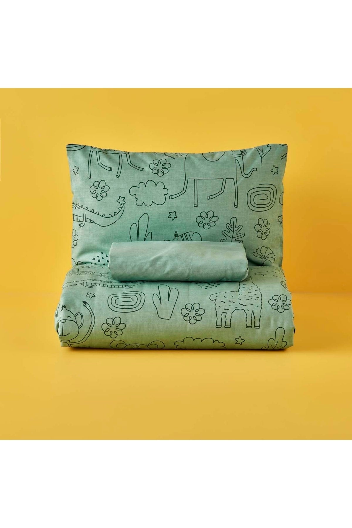 100% Cotton Ranforce Zoo Baby Duvet Cover Set Green (100X150 Cm)