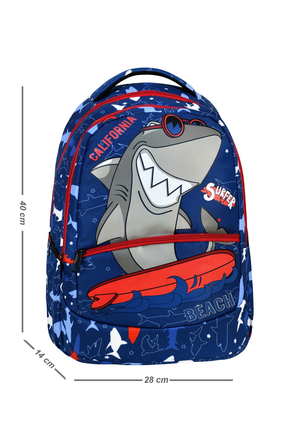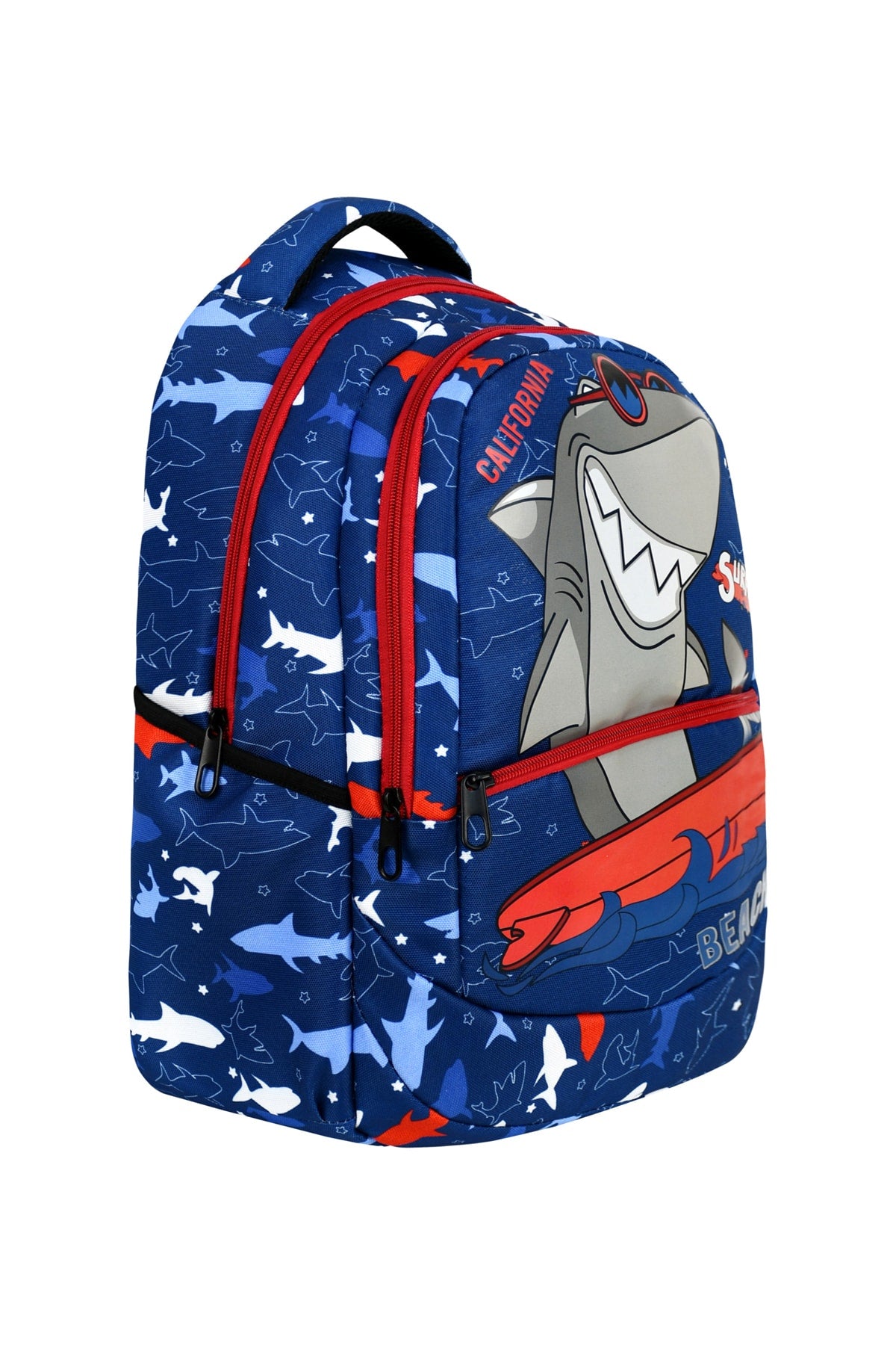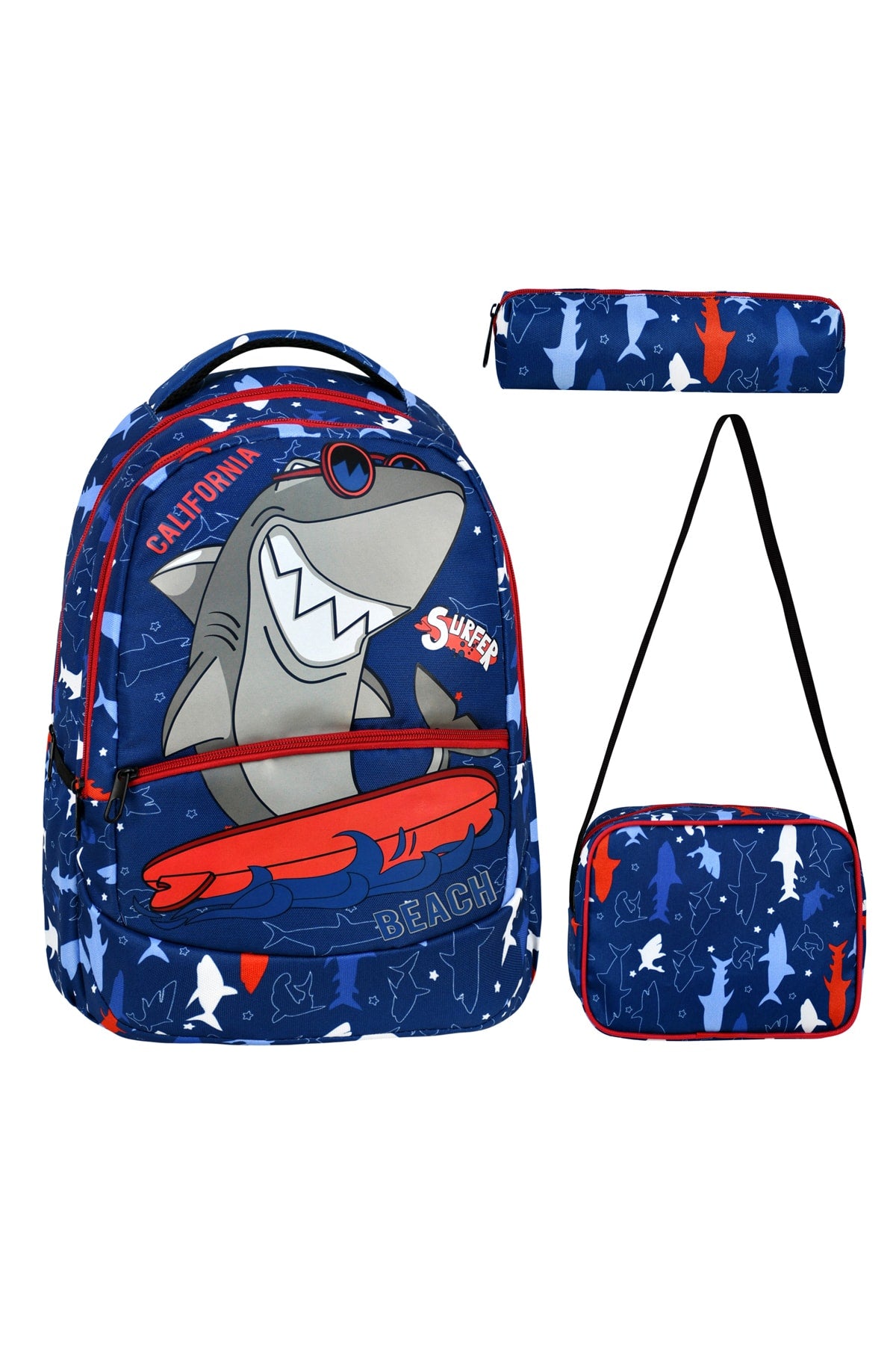 3-Pack Primary School Shark Patterned School Bag With Food And Pencil Holder For Boys