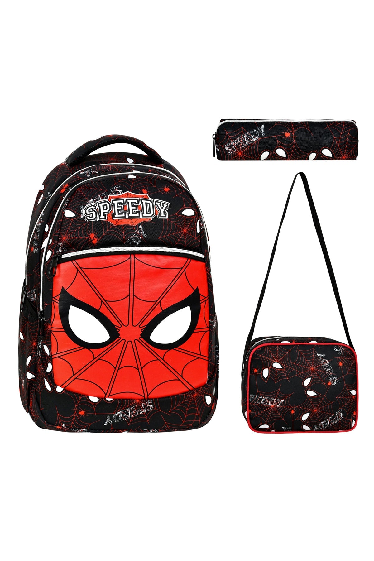 3-Pack Primary School Spider-Man Patterned School Bag For Boys With Food And Pencil Holder