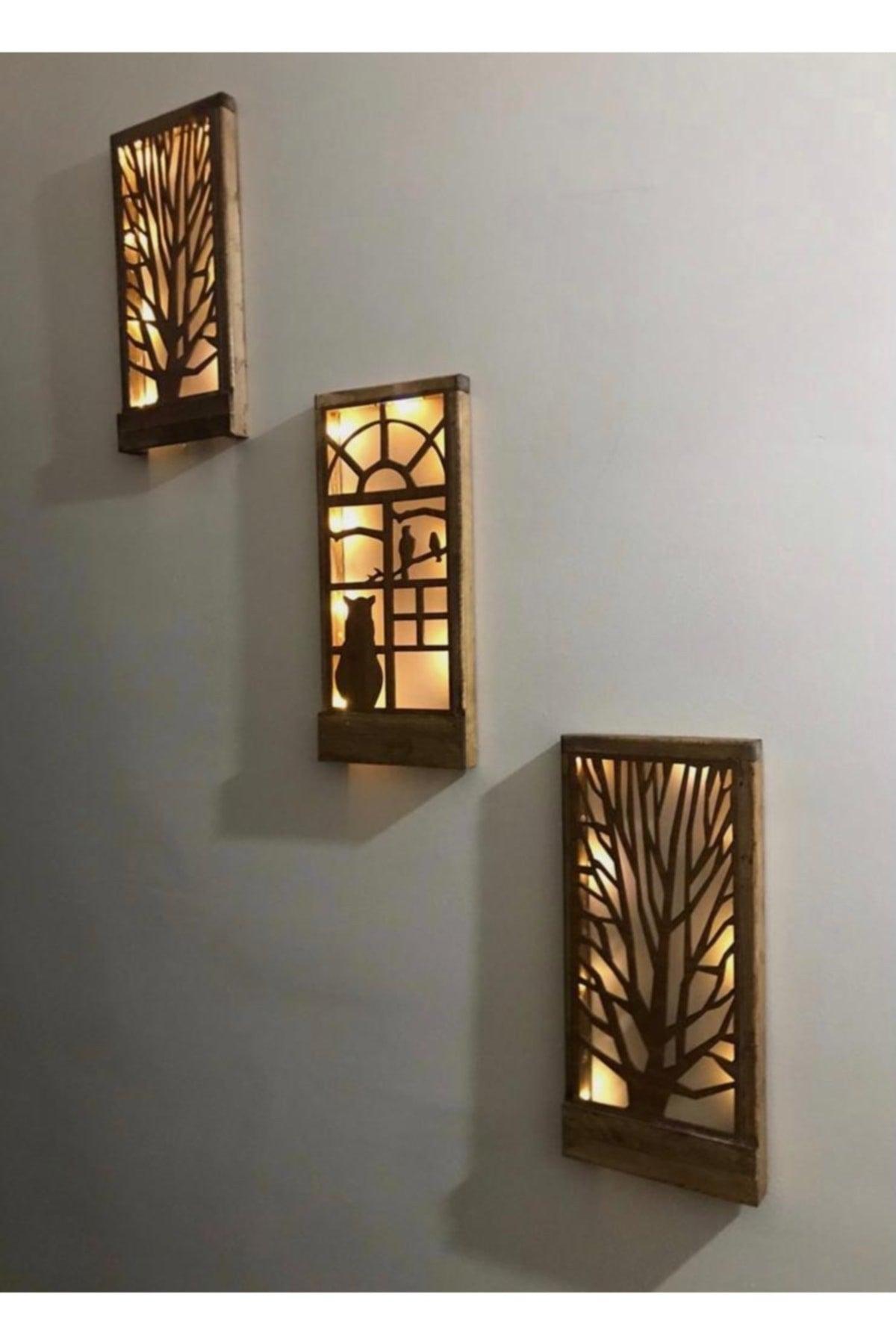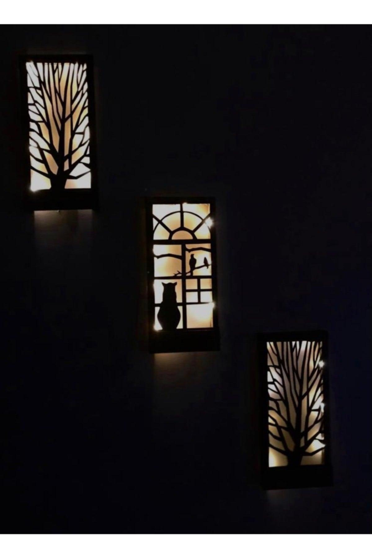 3 Pcs Set Including Batteries Fairy Led Solid Wood Table Home Gift Hallway Entrance Night Lamp 36X18 Wall Decoration