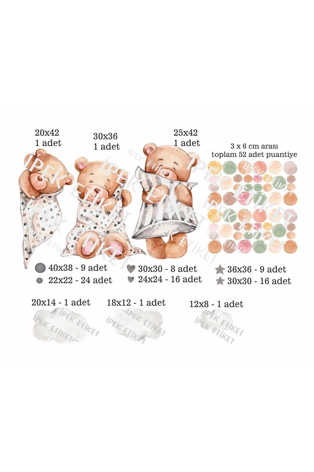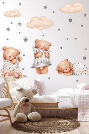 3 Sleeping Bear Clouds And Stars Kids Baby Room Sticker Set
