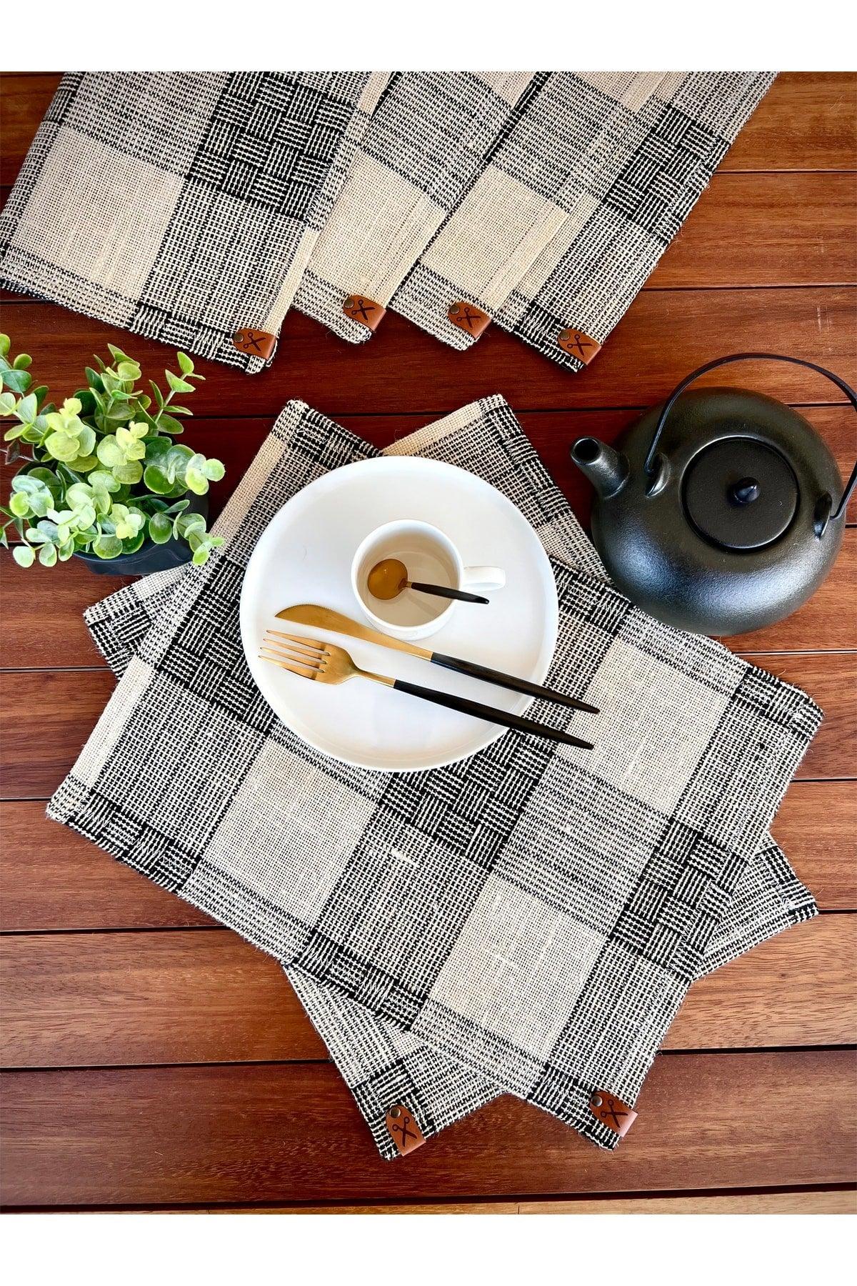 6 Pieces Rectangular Straw, Jute Placemat Cover Knit Serving Set - Striped