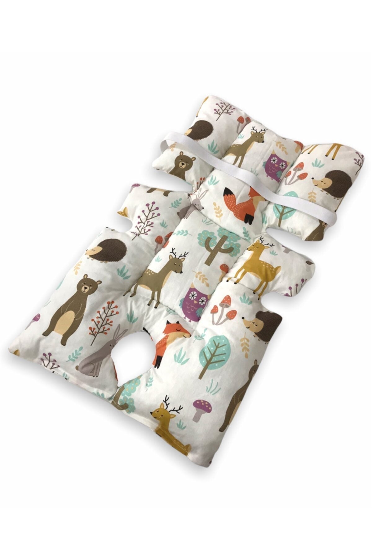 Baby Stroller And Car Seat Cushion With Waist Support Nature Cute Animal Pattern