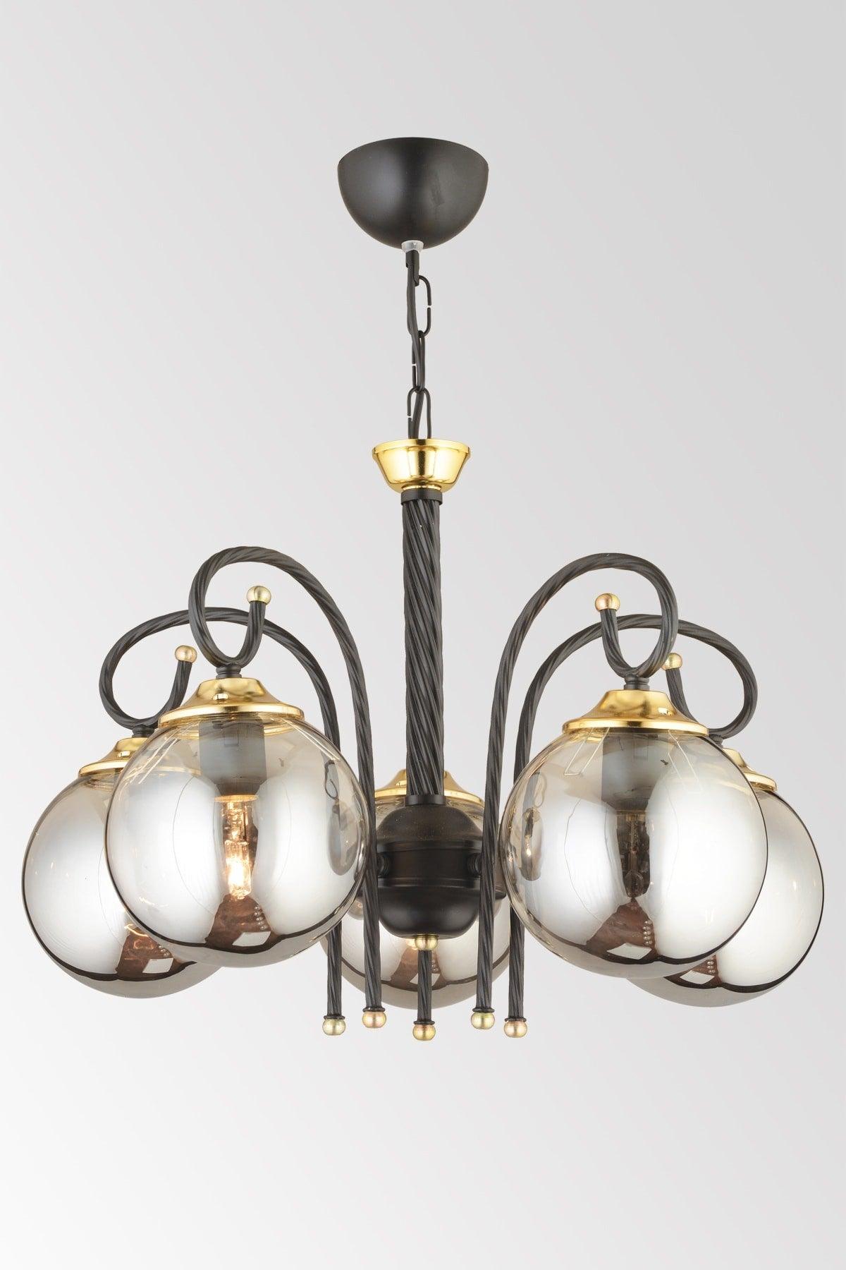 Black Azra 5 Piece Smoked Globe Glass Downward Facing Luxury Chandelier - Swordslife