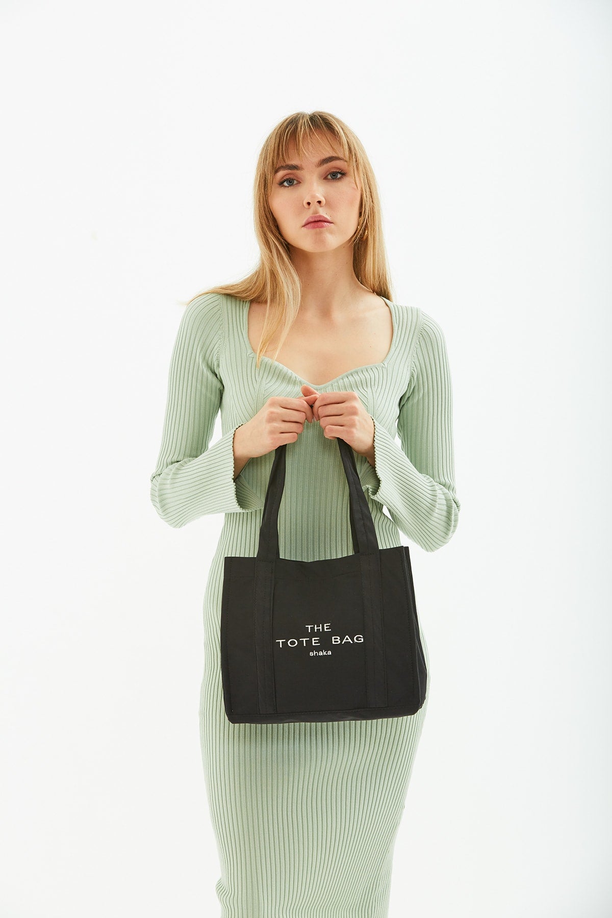Black U45 Snap Closure The Tote Bag Embroidered Canvas Fabric Casual Women'S Arm And Shoulder Bag 25X3