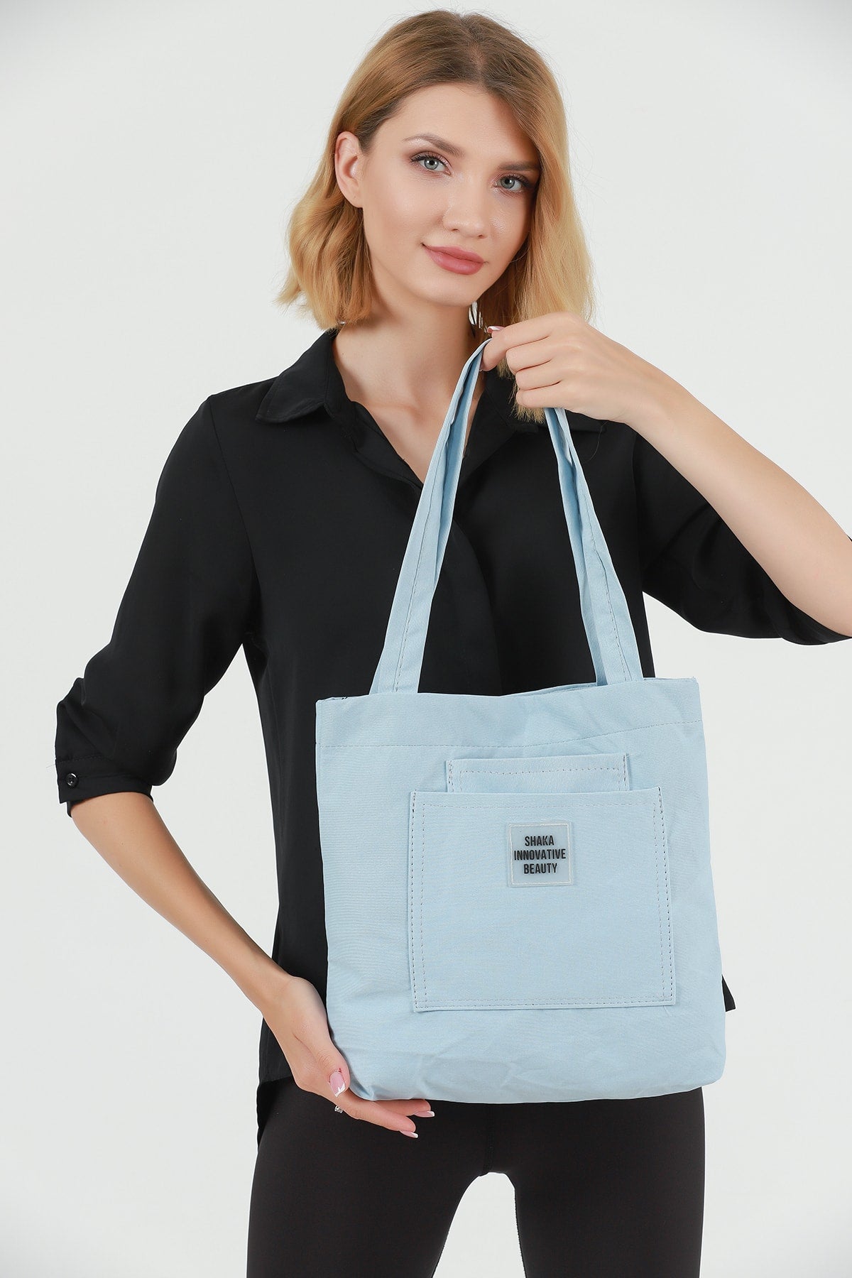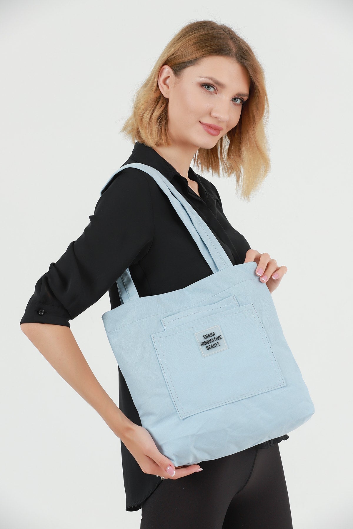 Blue U22 3-Compartment Front 2 Pocket Detailed Canvas Fabric Daily Women'S Arm And Shoulder Bag B:35 E:35