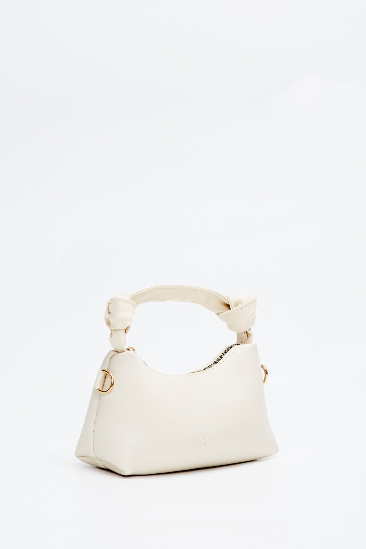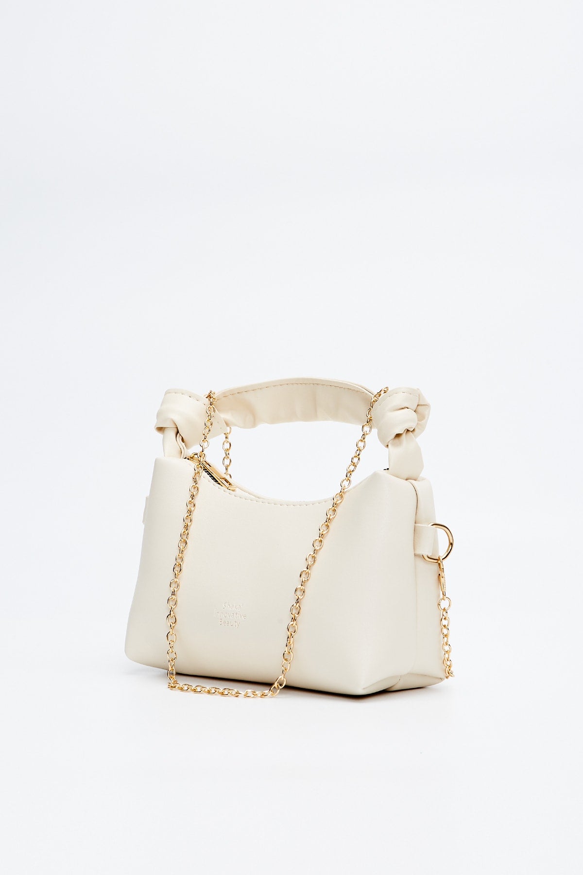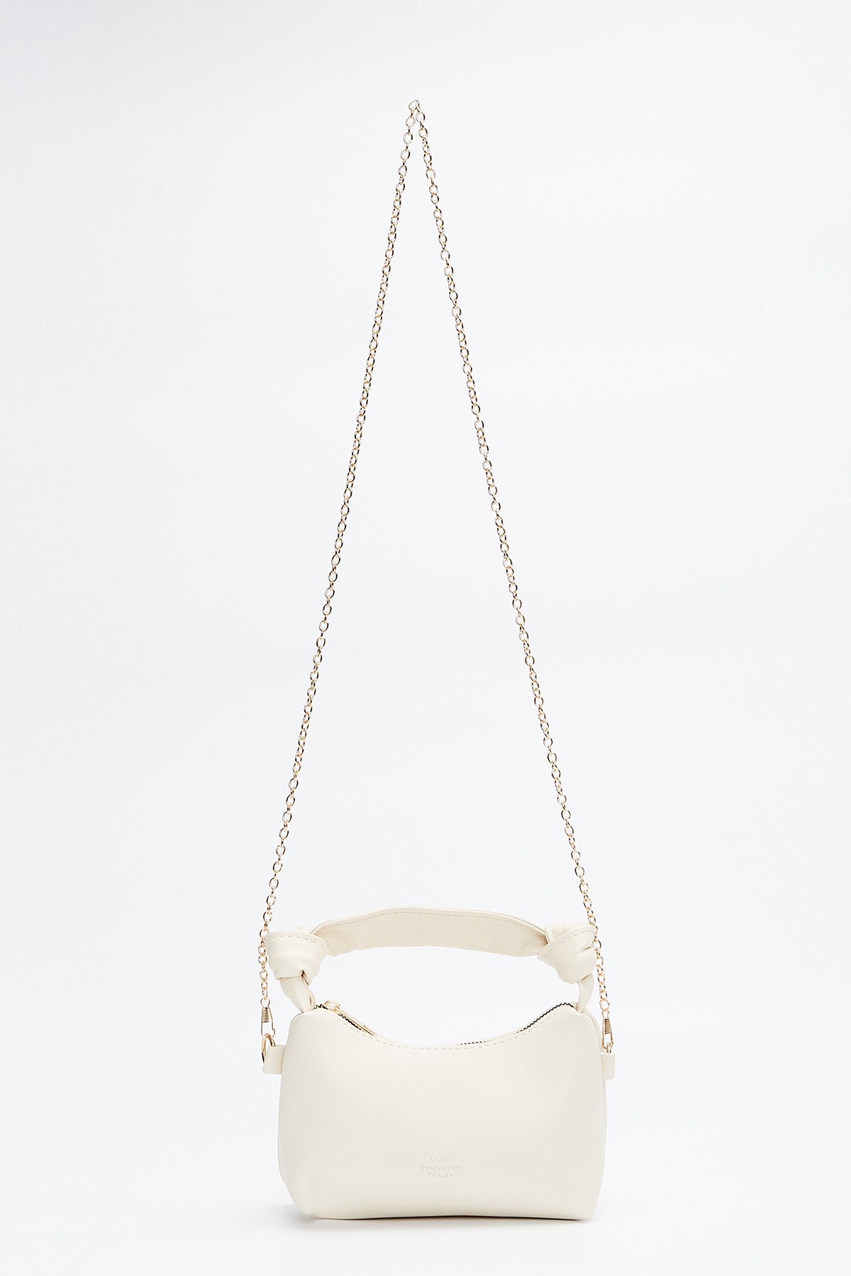 Cream Shk24 Soft Leather Knot Detailed Chain Strap Hand And Shoulder Bag L:14 E:22 W:8 Cm