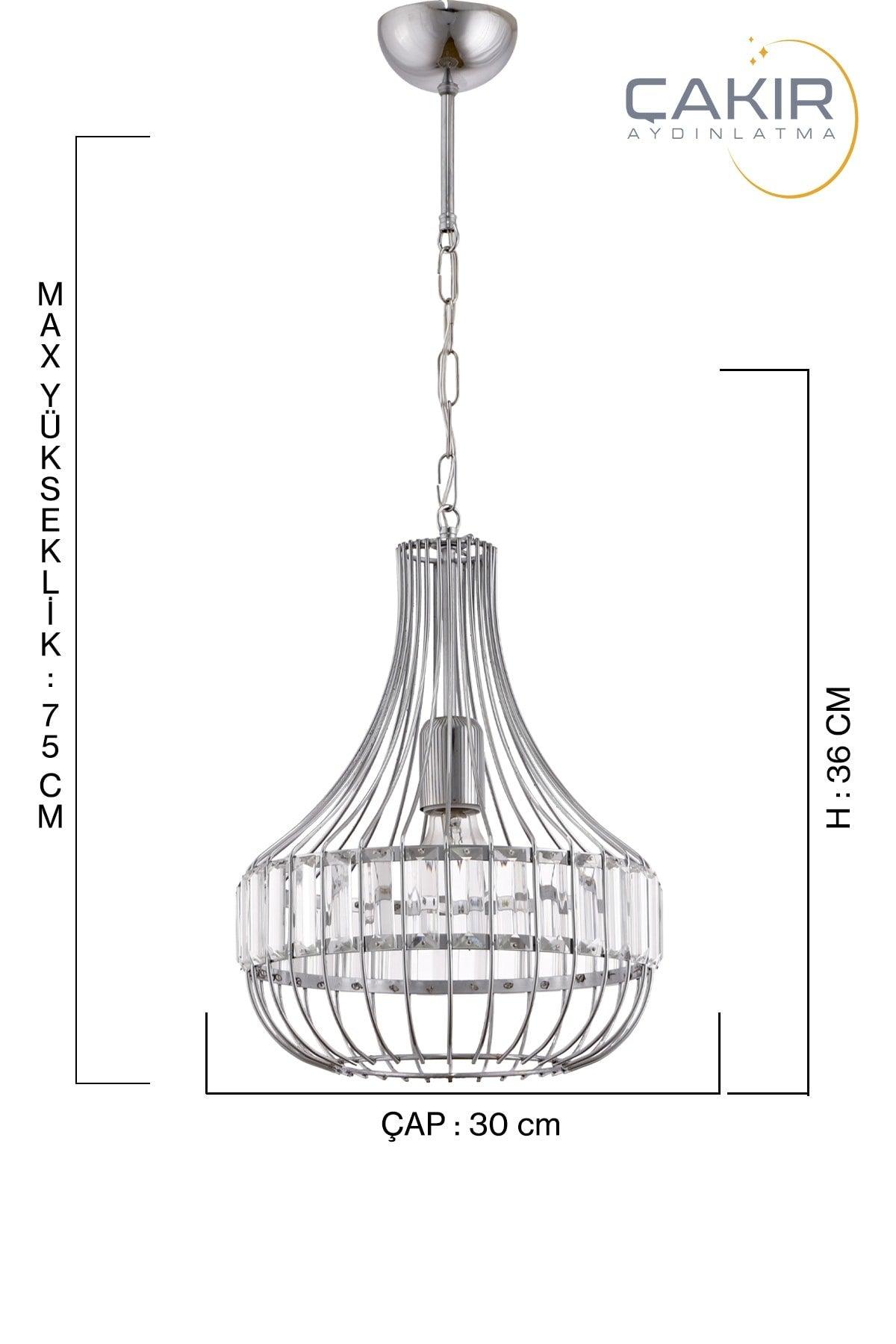 Diamond Crystal Stone Silver Chrome Single Pendant Lamp Chandelier - Çakır Chandelier