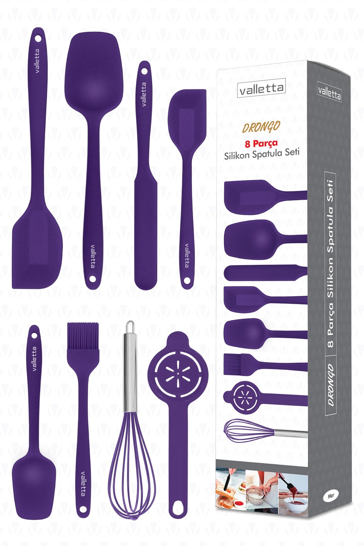Drongo Heat Resistant Fireproof Nonstick Silicone Spatula Set 8 Pieces Purple