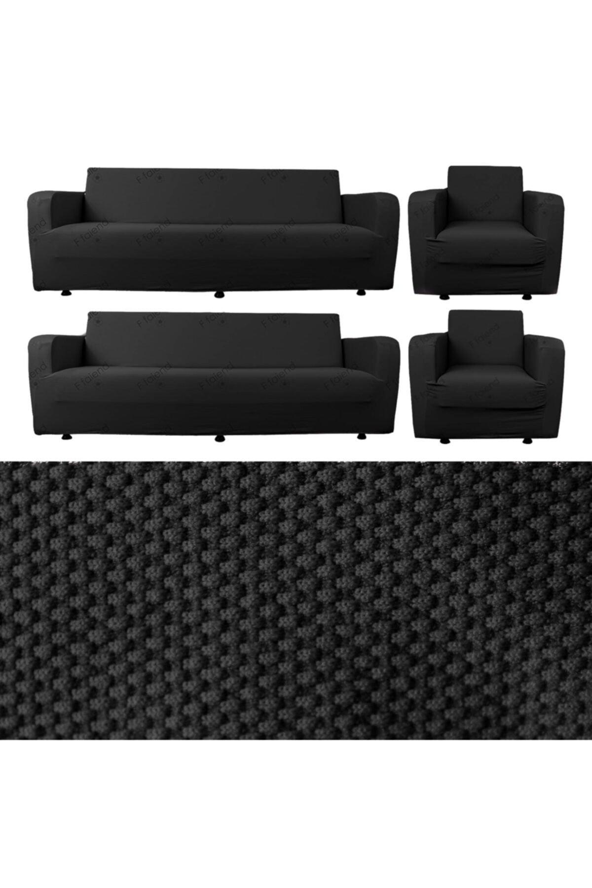 Elastic Elastic Seat Sofa Cover Set 3+3+1+1 Maxi Set Anthracite