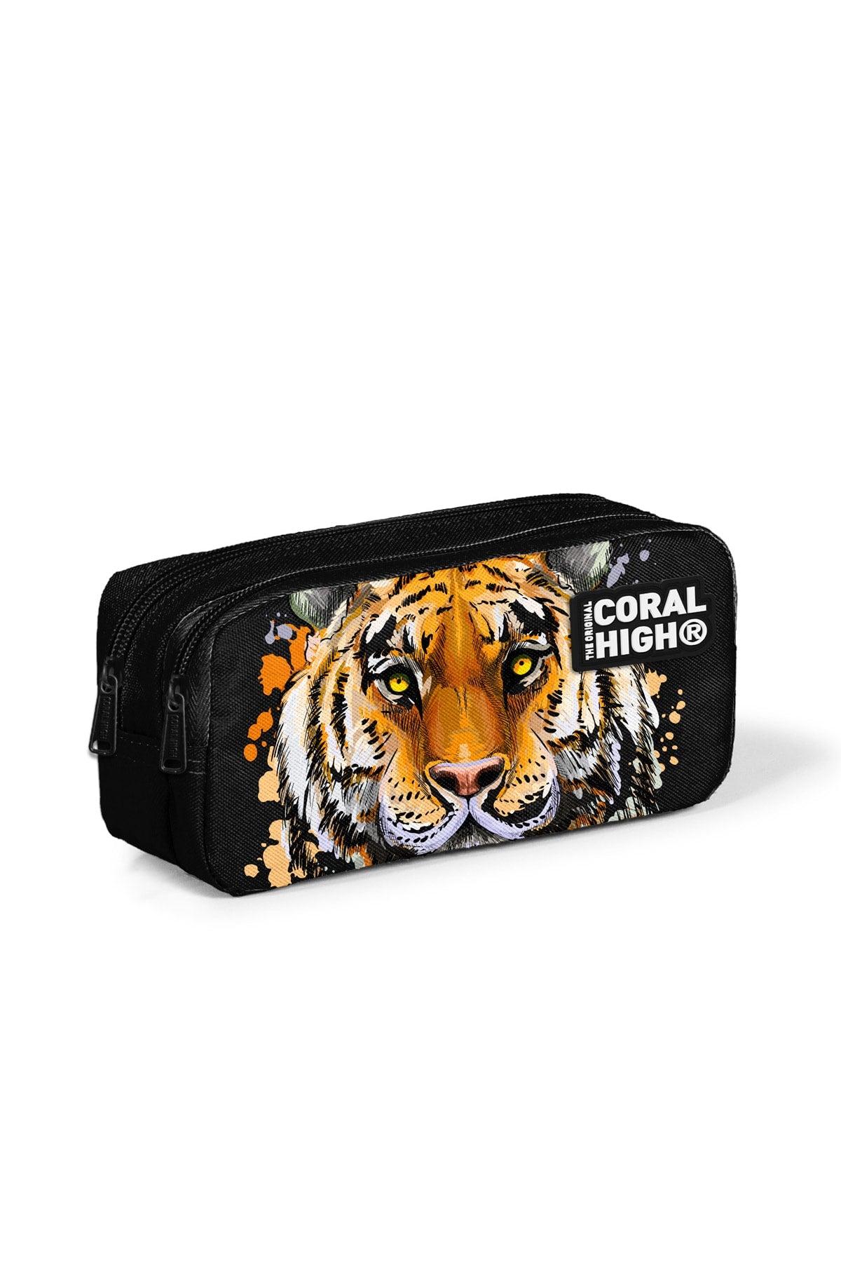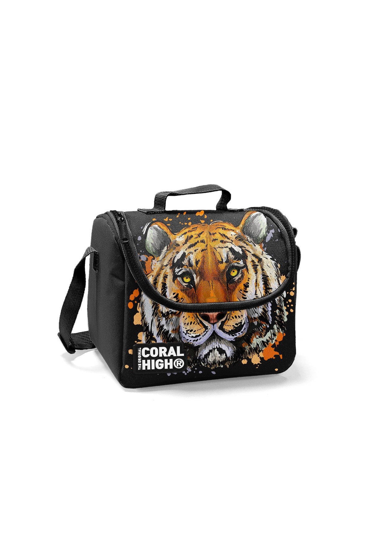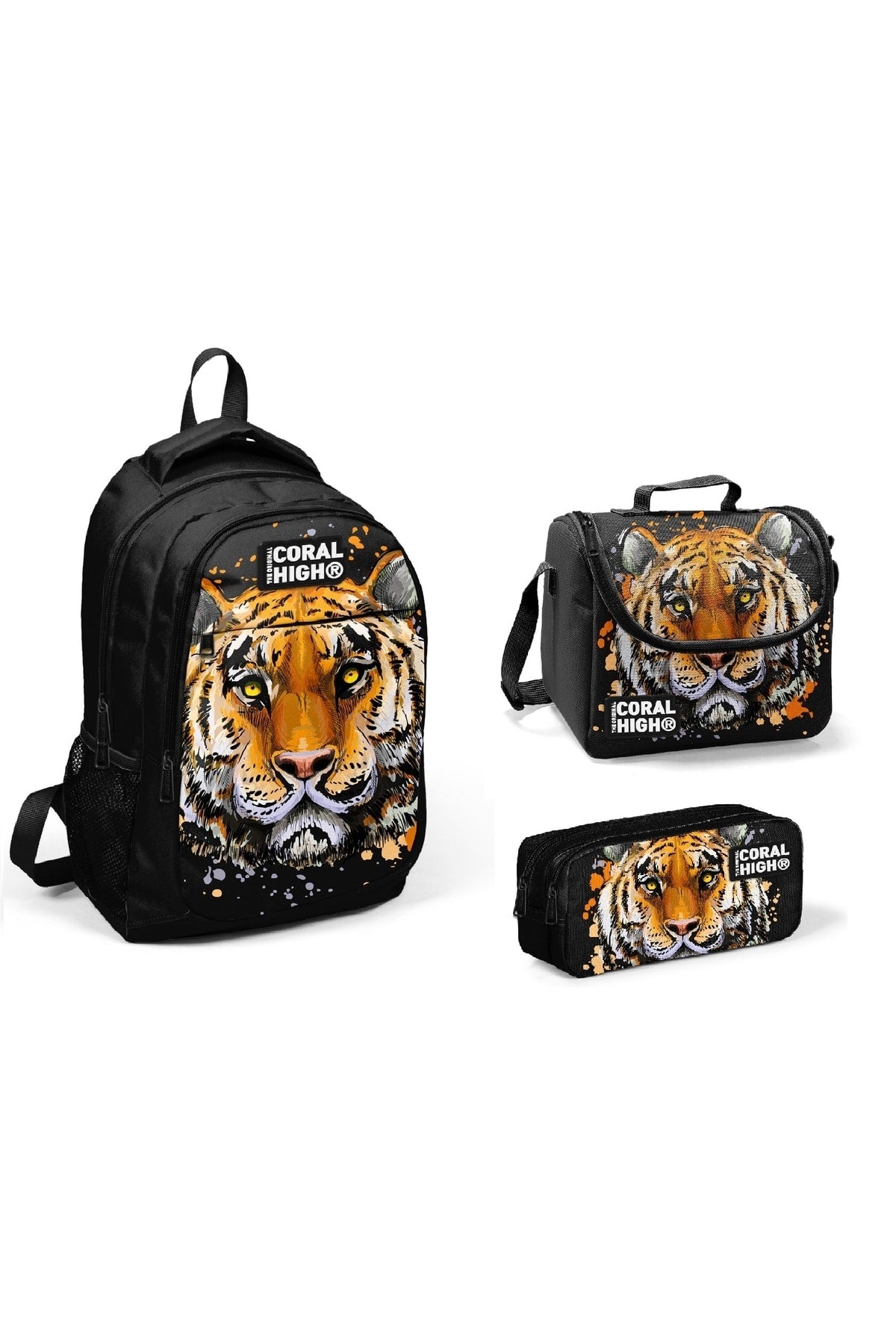 Kids Black Tiger Patterned Three Compartment 3-Pack Bag Set