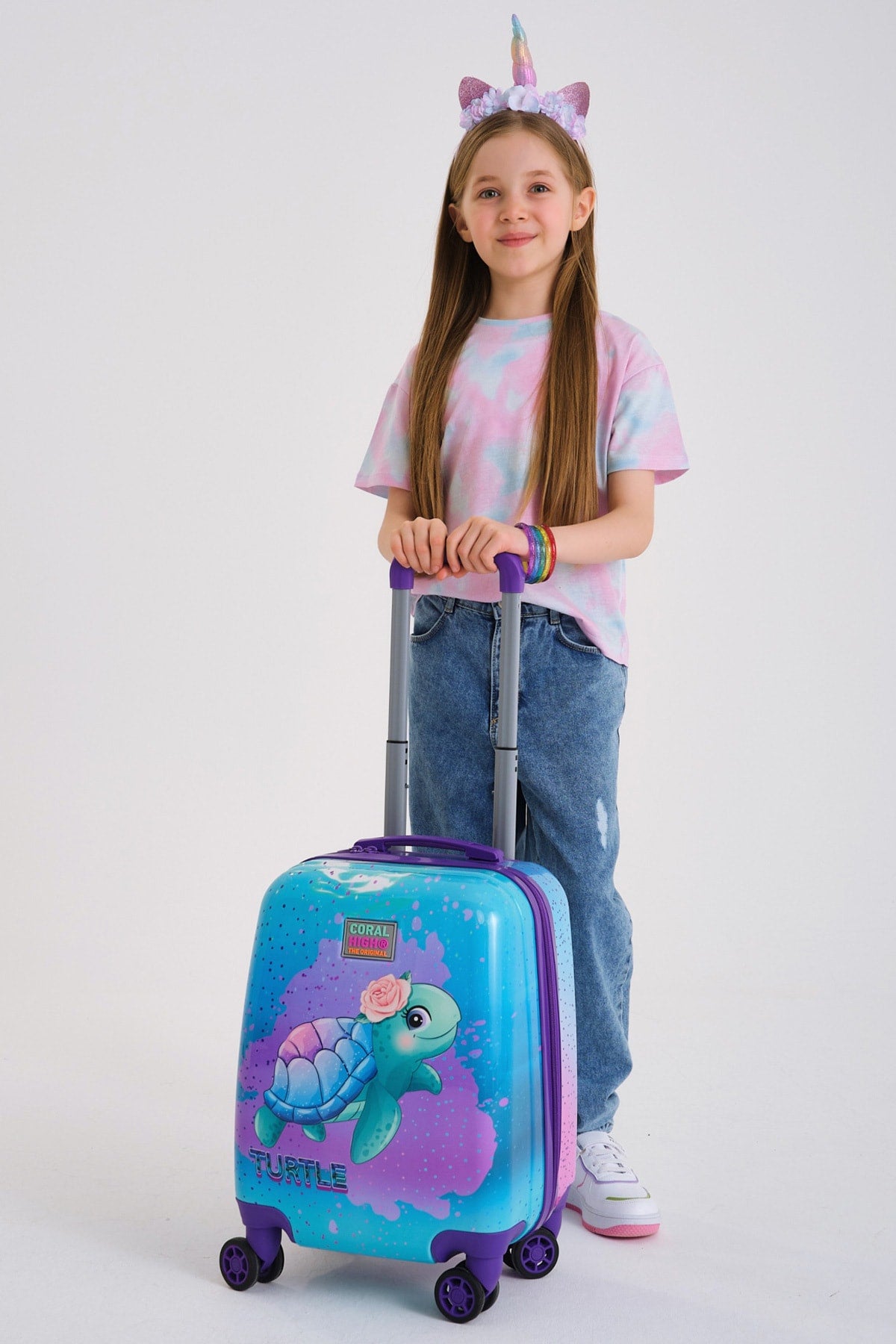 Kids Light Pink Blue Turtle Patterned Child Suitcase 16724