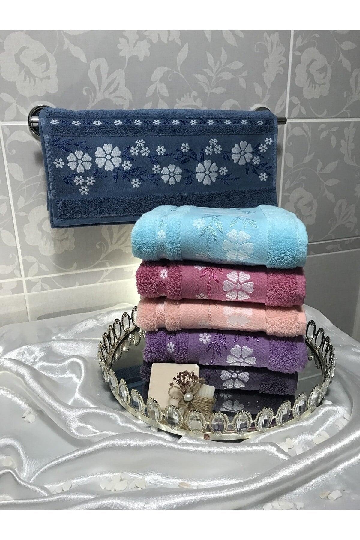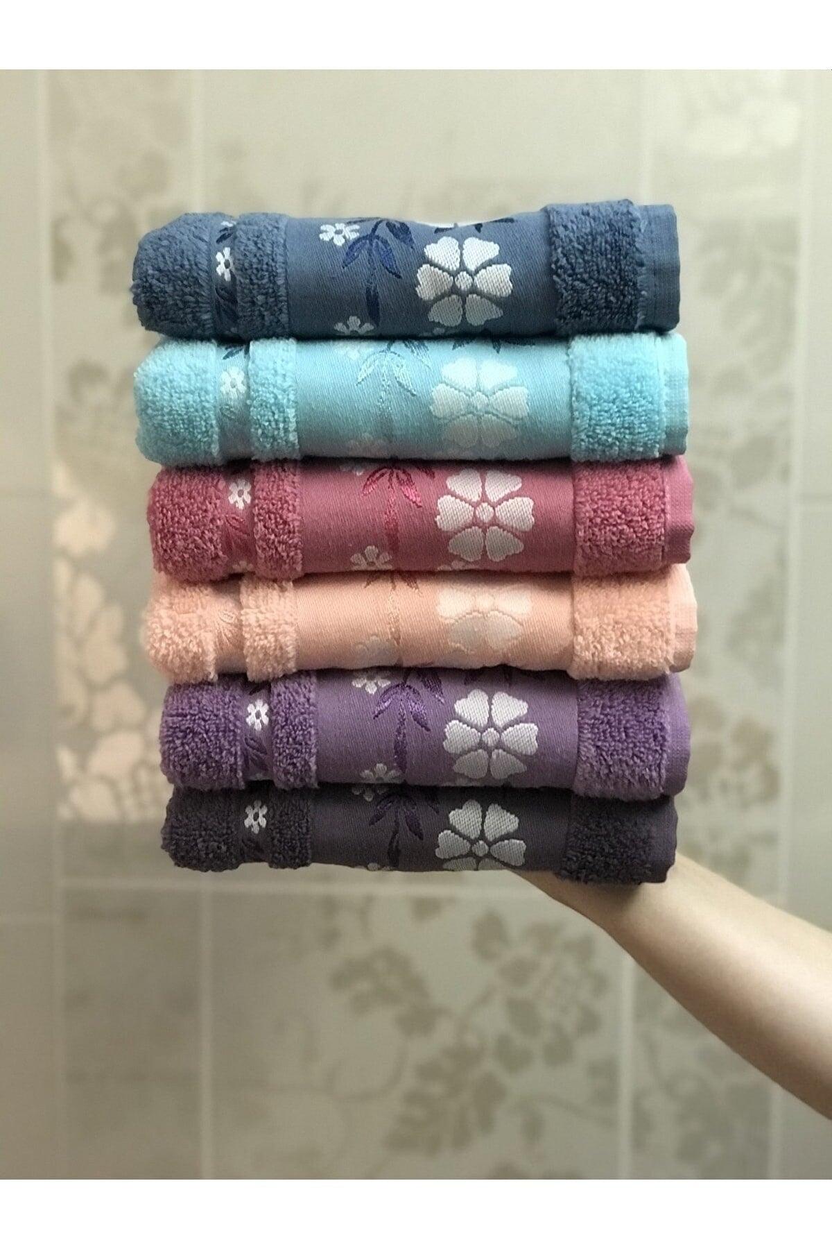Large Floral Patterned 6 Pcs Microcotton Fluffy Hand And Face Towel Set (50*90 Cm)