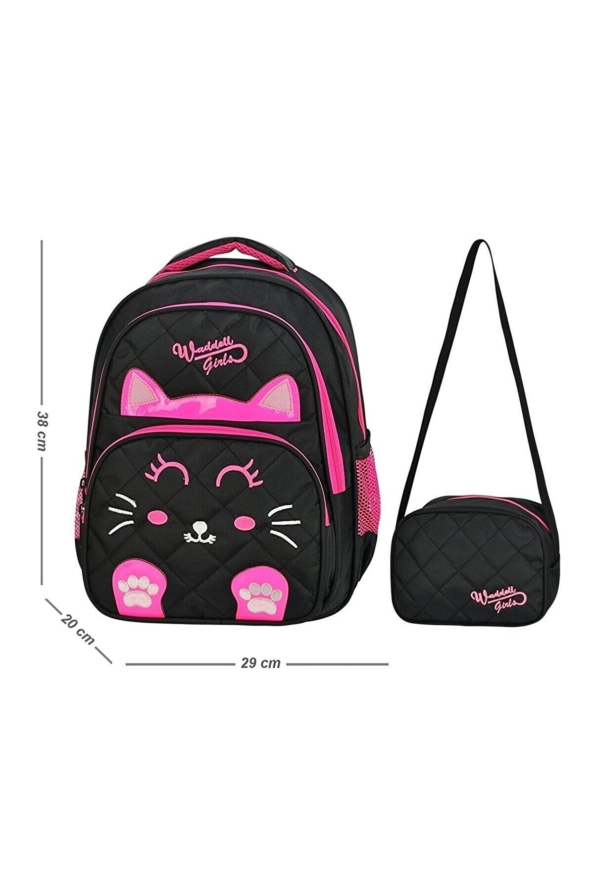 Licensed Quilted Cat Patterned Primary School Bag And Lunch Box