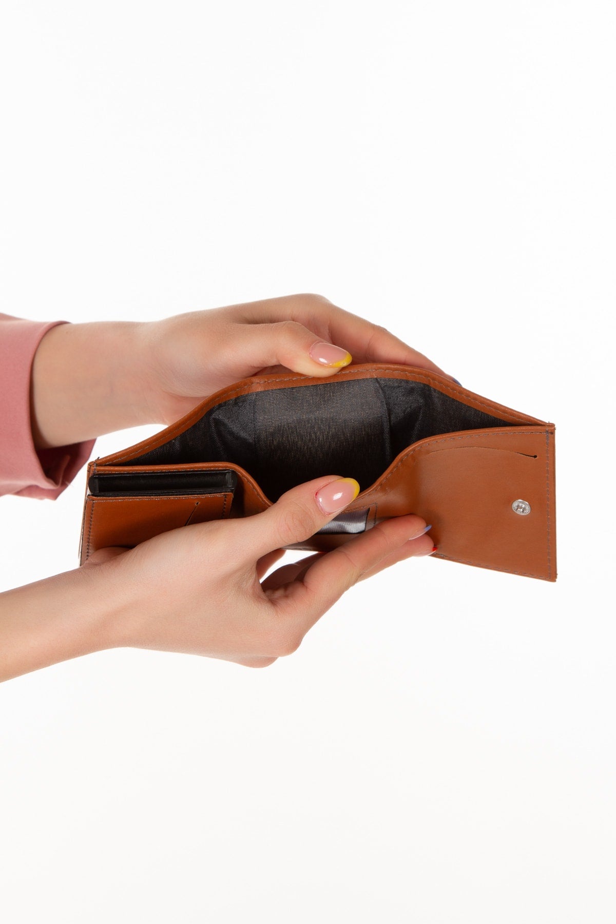 Men'S Vegan Leather Black Cash Money Compartment Sliding Mechanism Wallet Card Holder