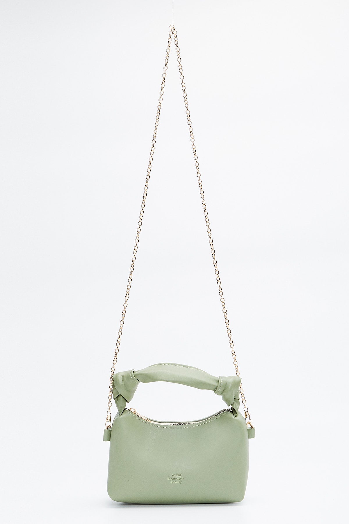 Mint Green Shk24 Soft Leather Knot Detailed Chain Strap Hand And Shoulder Bag L:14 E:22 W:8 Cm