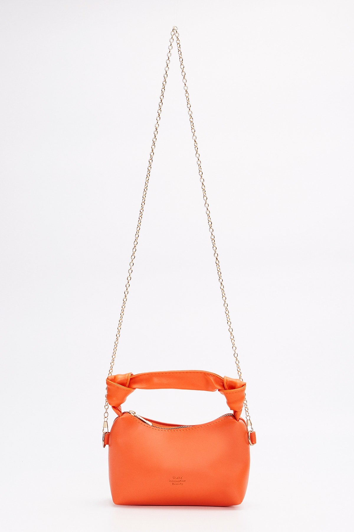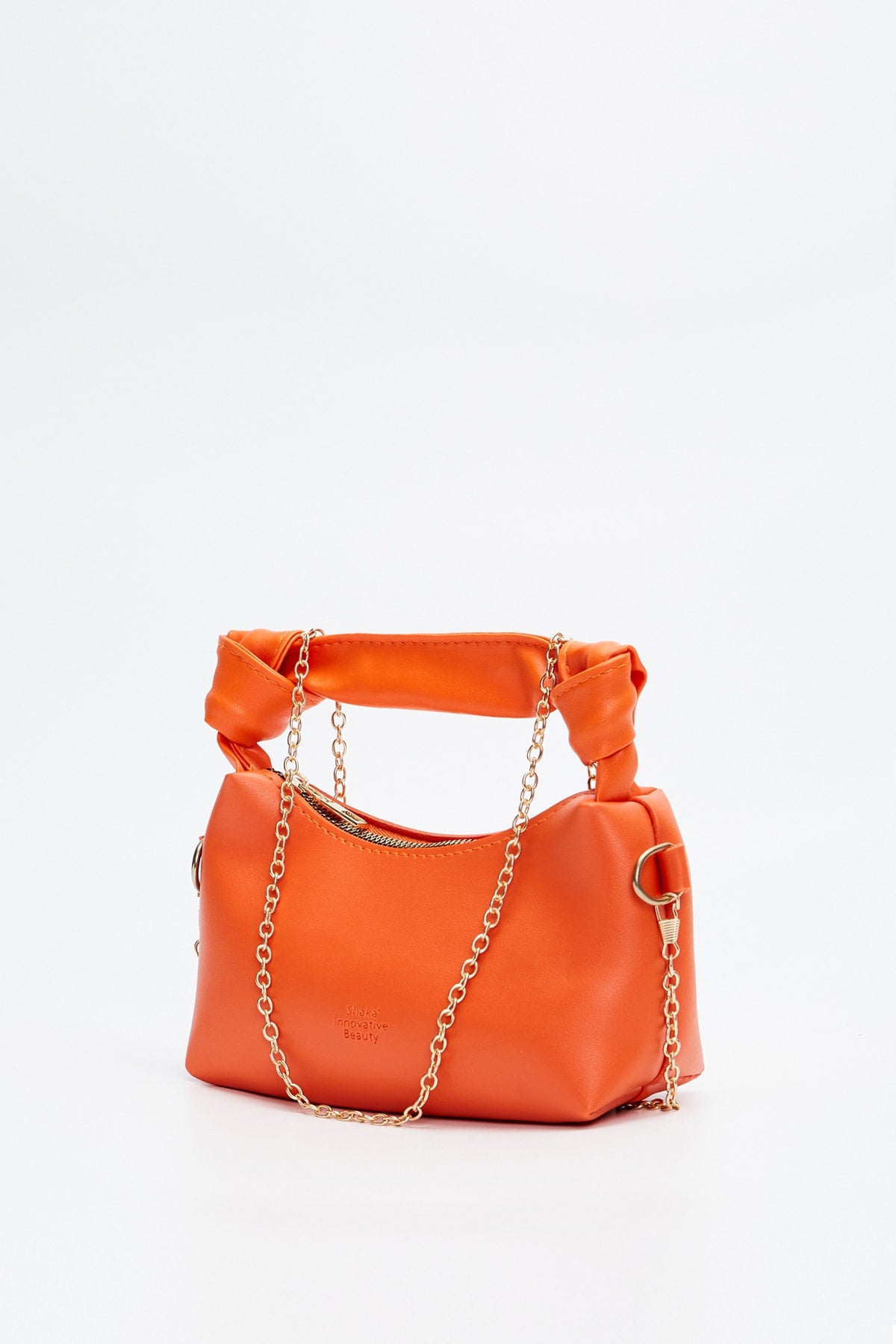 Orange Shk24 Soft Leather Knot Detailed Chain Strap Hand And Shoulder Bag L:14 E:22 W:8 Cm