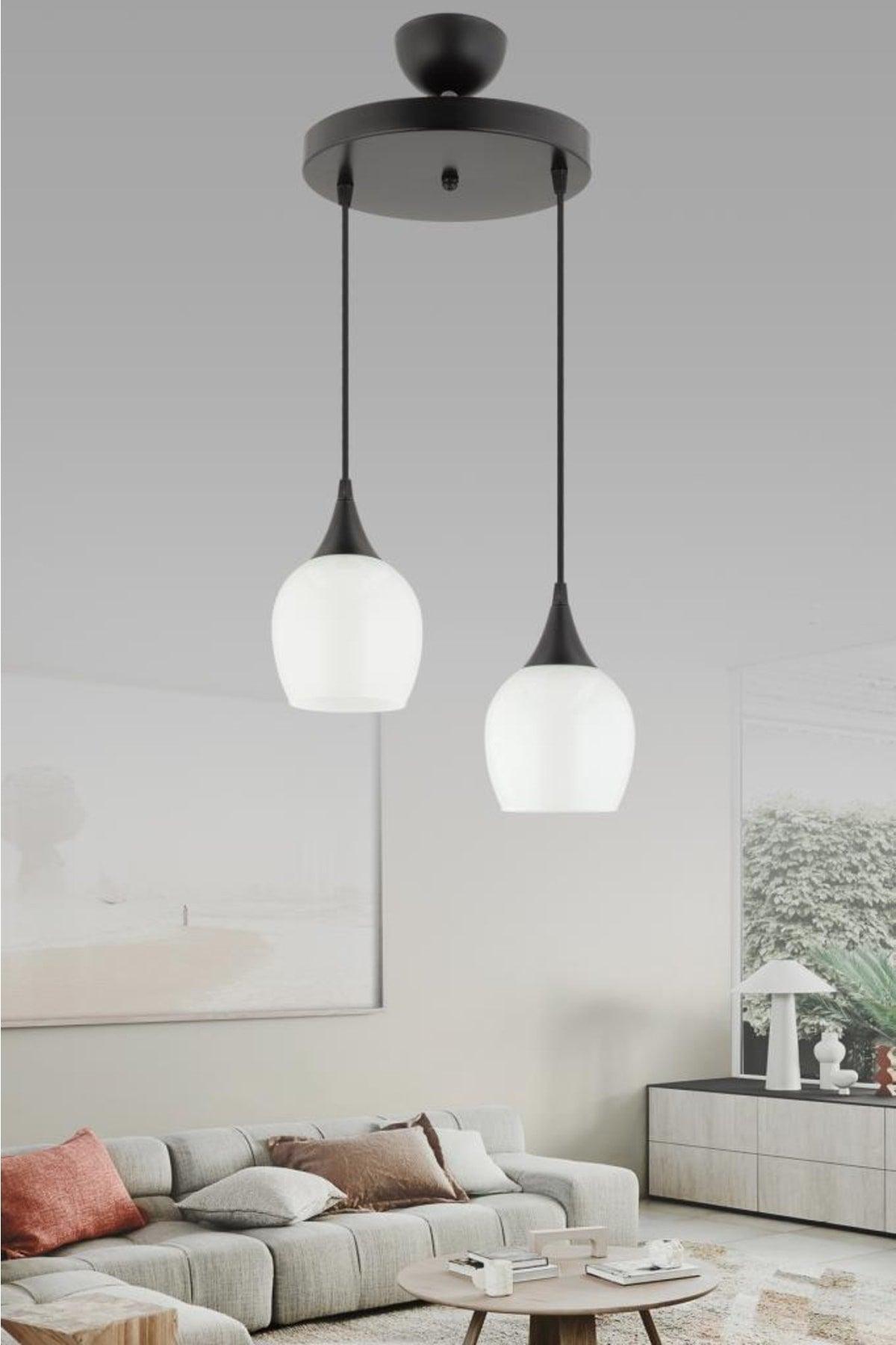 Pendant Lamp 2 Black And White Opaque Glass Chandelier