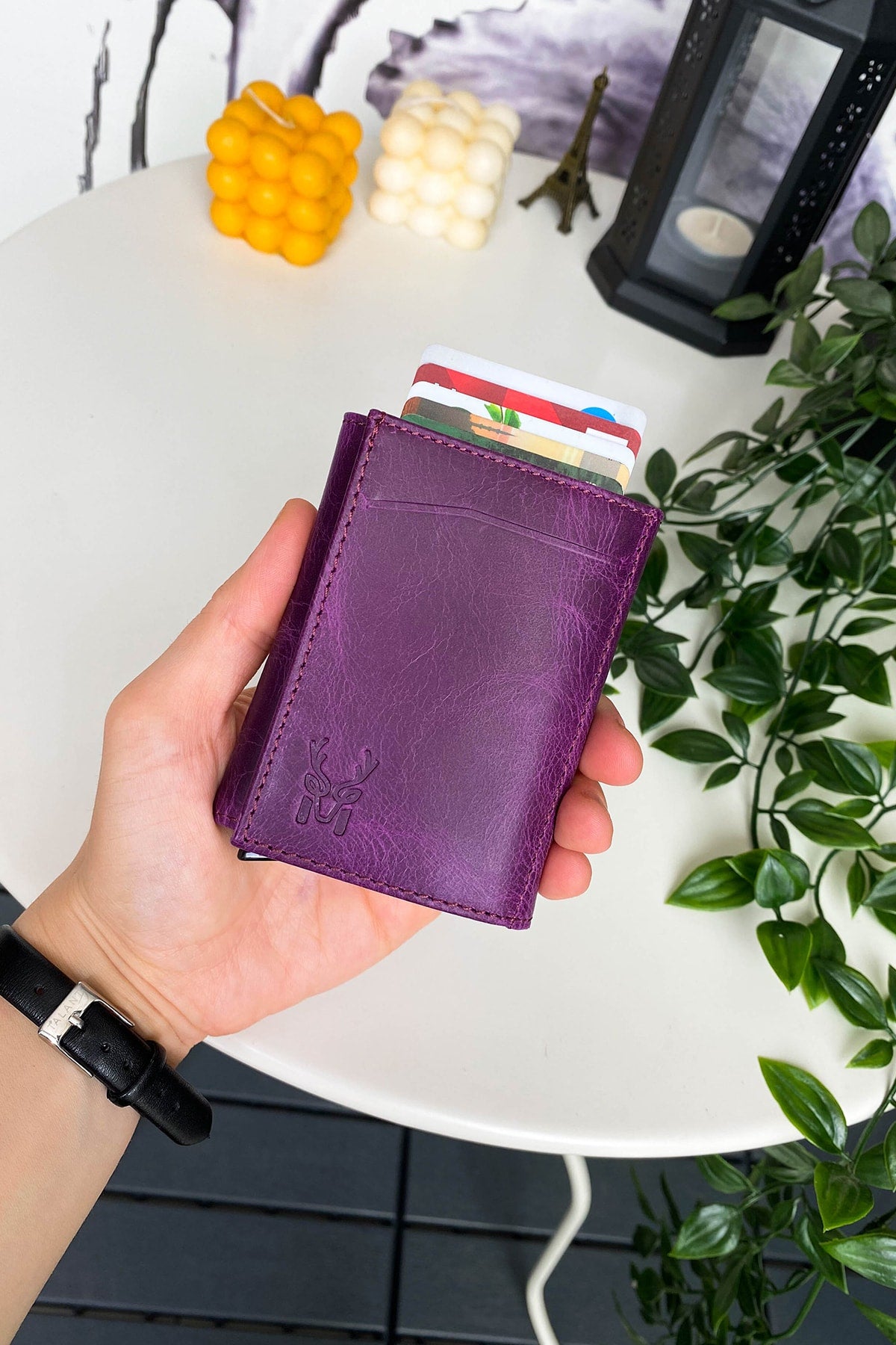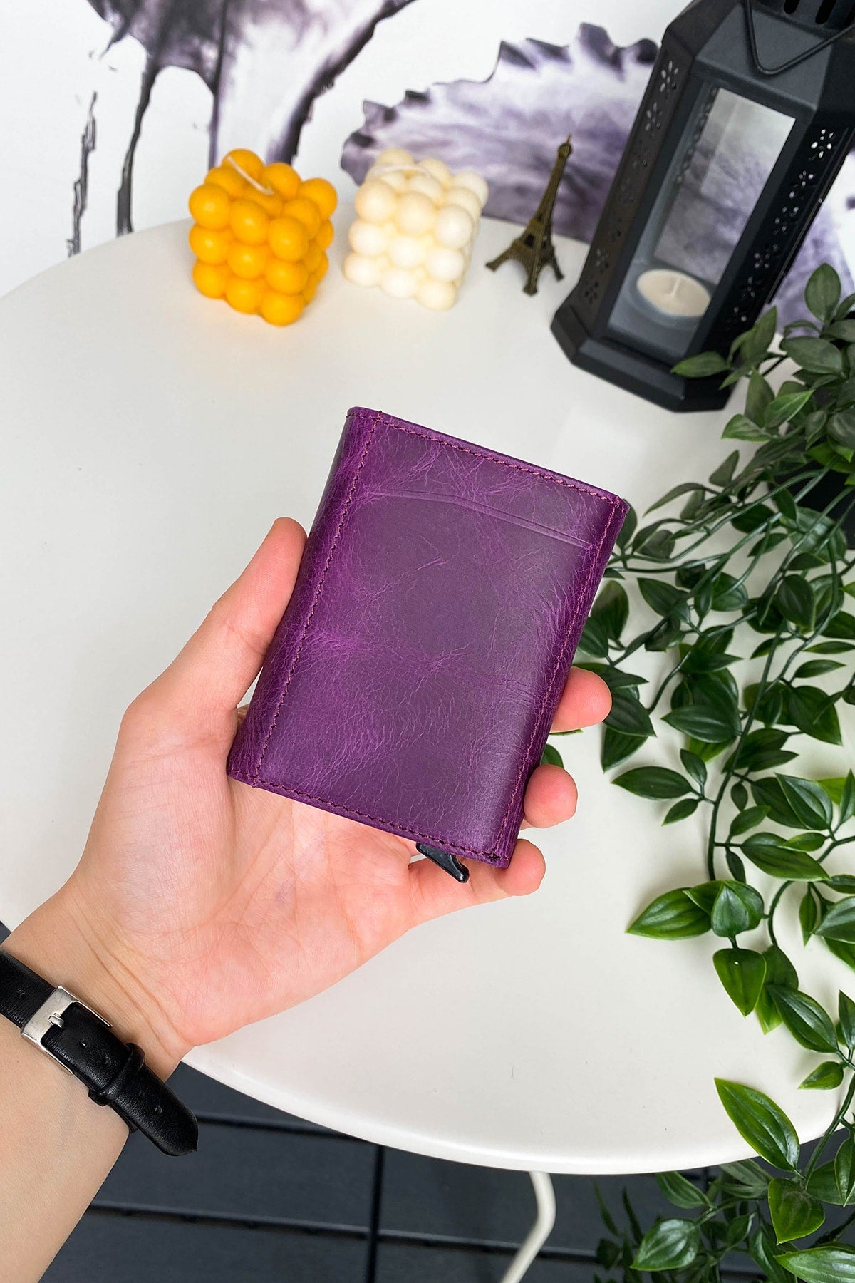 Pescol - Genuine Leather Purple Smart Card Holder / Wallet With Rfid Protection Mechanism, Top Level Craftsmanship