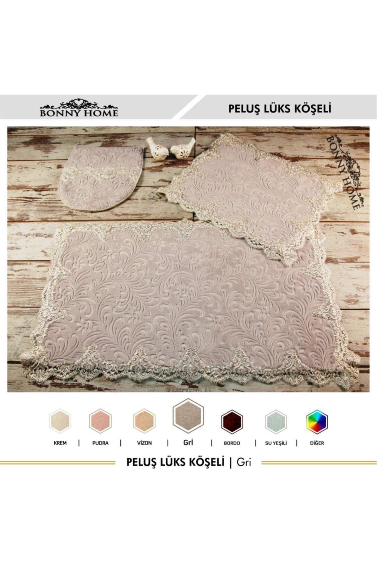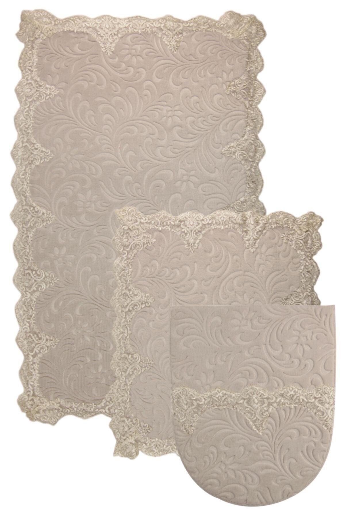 Plush Cornered Gray 3 Piece Lacy Closet Set Dowry Bathroom Carpet Mat Set
