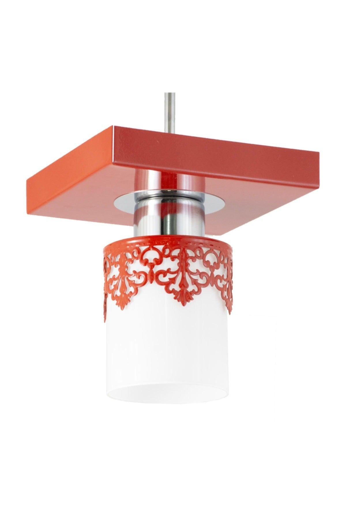 Single Modern Sport Model Square Tray Crowned Red Chandelier
