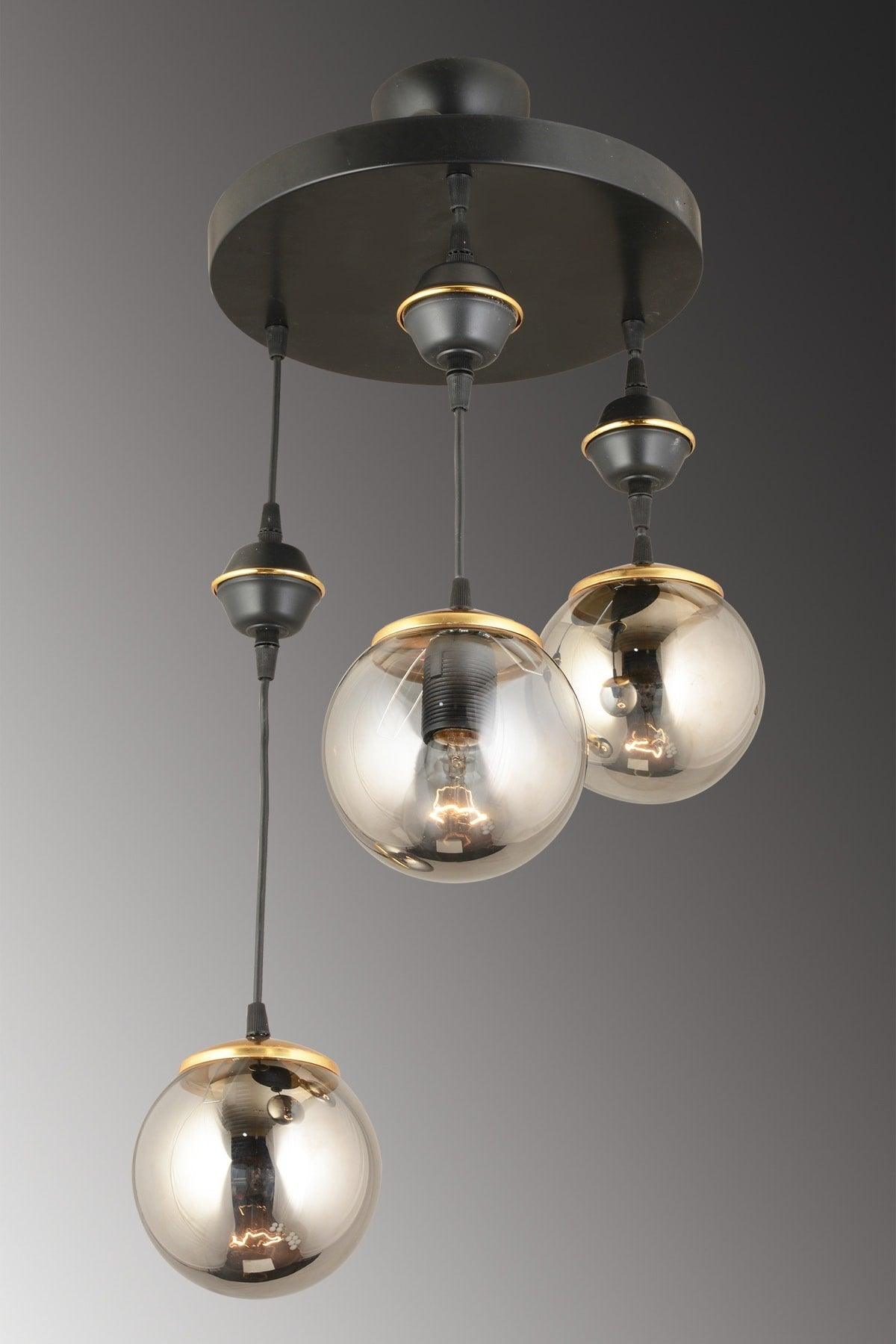 Suspended Tray Black 3-Set Smoked Globe Glass Downward Facing Luxury Chandelier