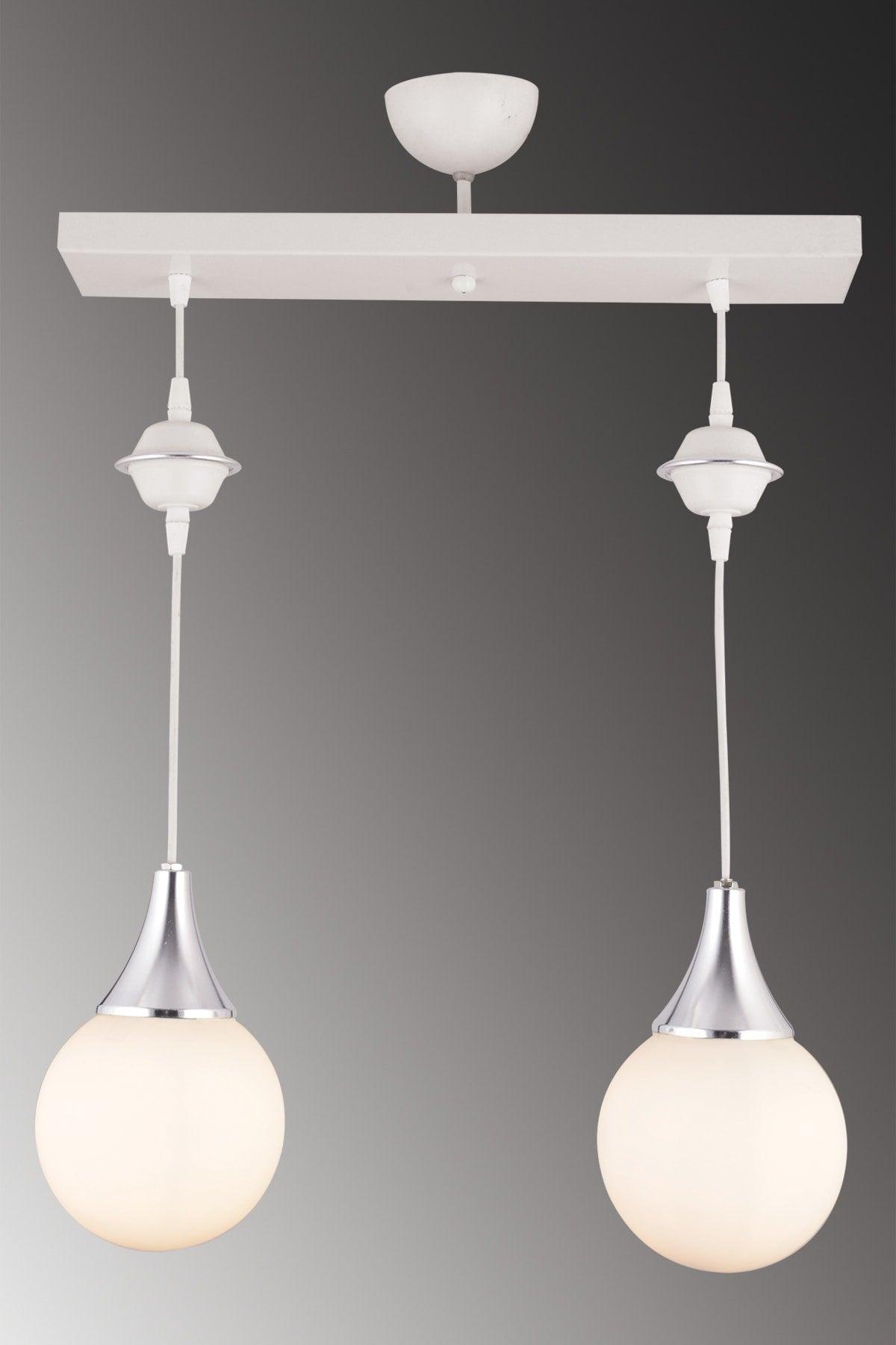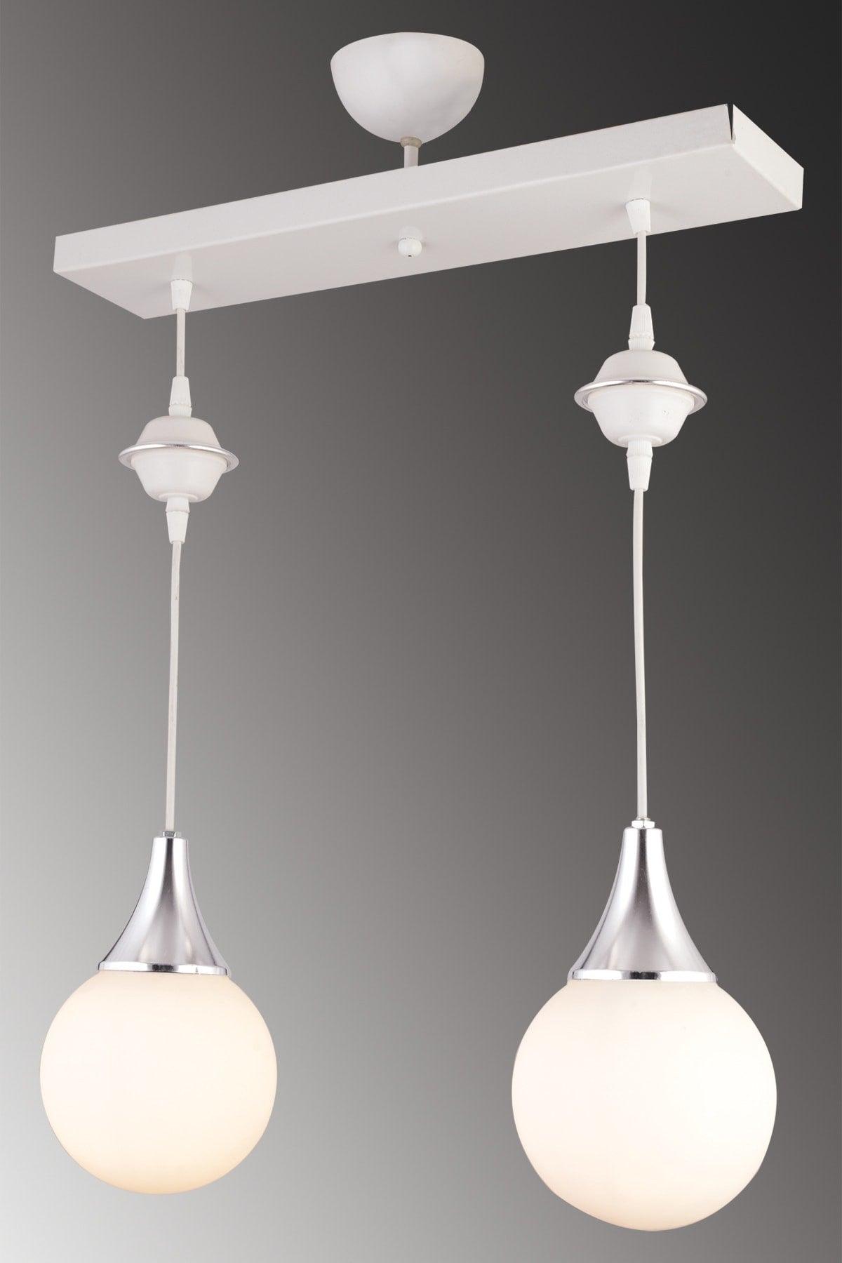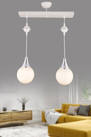 Suspension Lined White 2 Pair White Globe Glass Chrome Downward Facing Luxury Chandelier