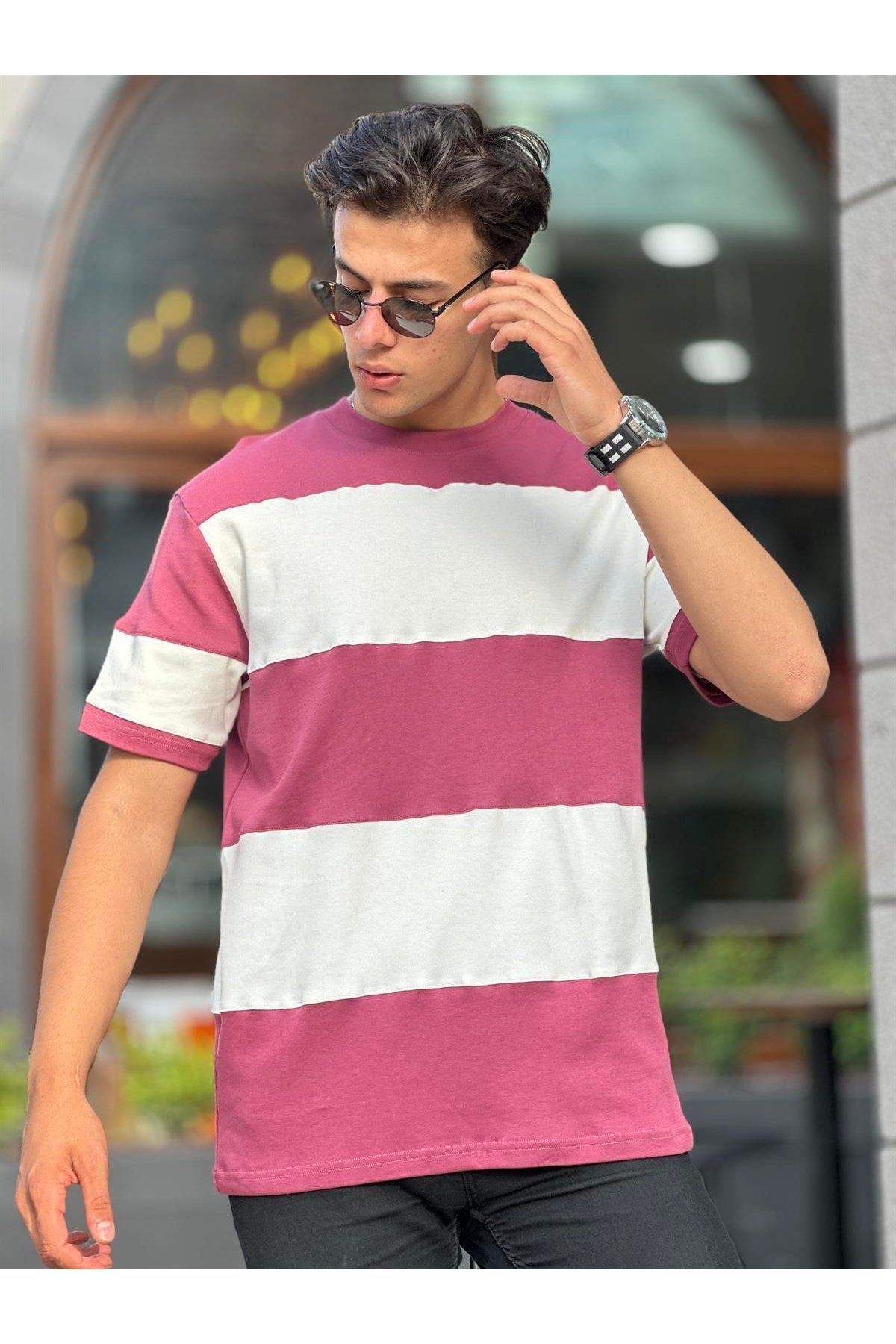 Two Color Short Sleeve T-Shirt Oversize-Fuchsia-White