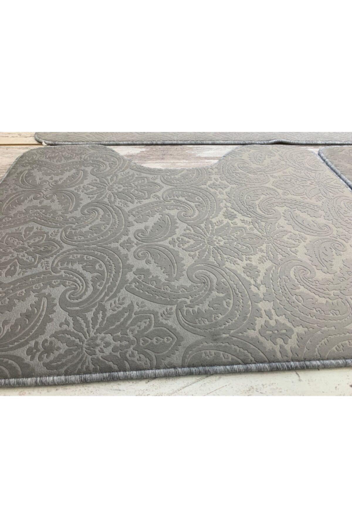 Ultrasoft Patterned Gray Closet Set Of 3 Bathroom Carpet Mat Set