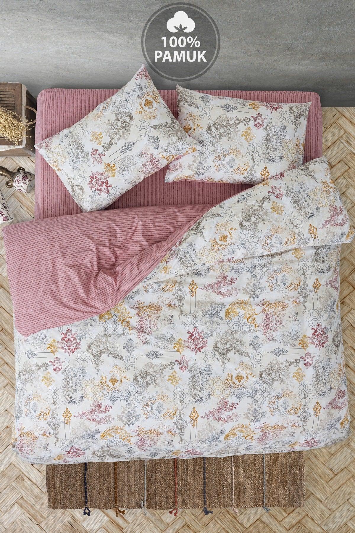 Ranforce Двойной Эластичный Комплект Постельного Белья Пододеяльник Античная Сушеная Роза