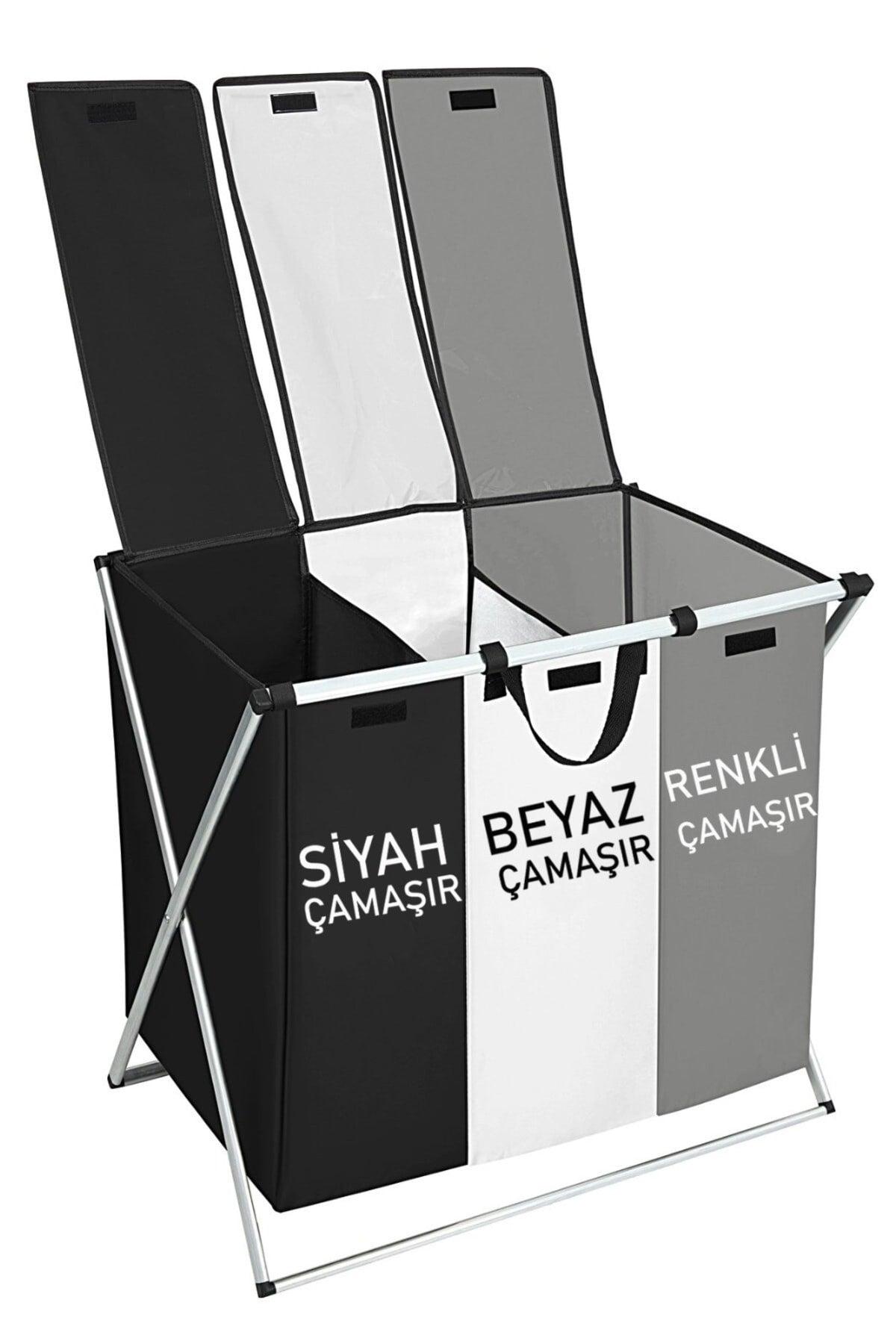 Складная трехкамерная корзина для грязного белья