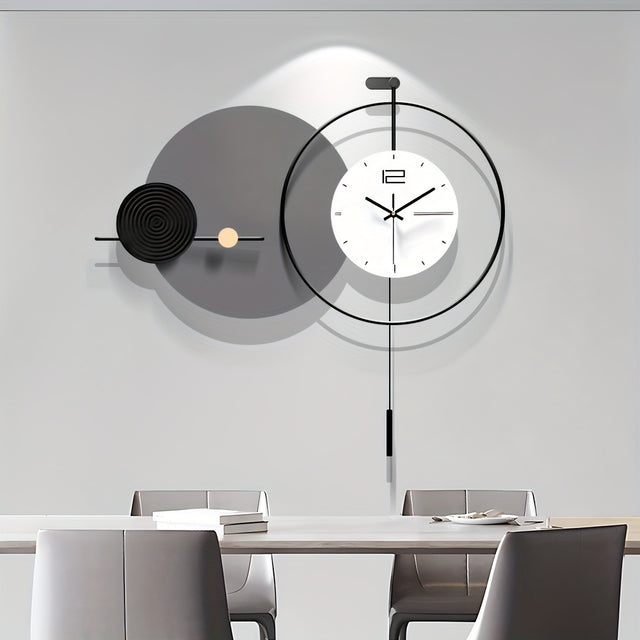 Large Modern Silent Metal Wall Clock with Pendulum - Sleek Black & Golden Accents, Round Design for Living Room, Kitchen, Bedroom, Office Decor - Battery Operated (AAA Not Included), Wall Clock Living Room