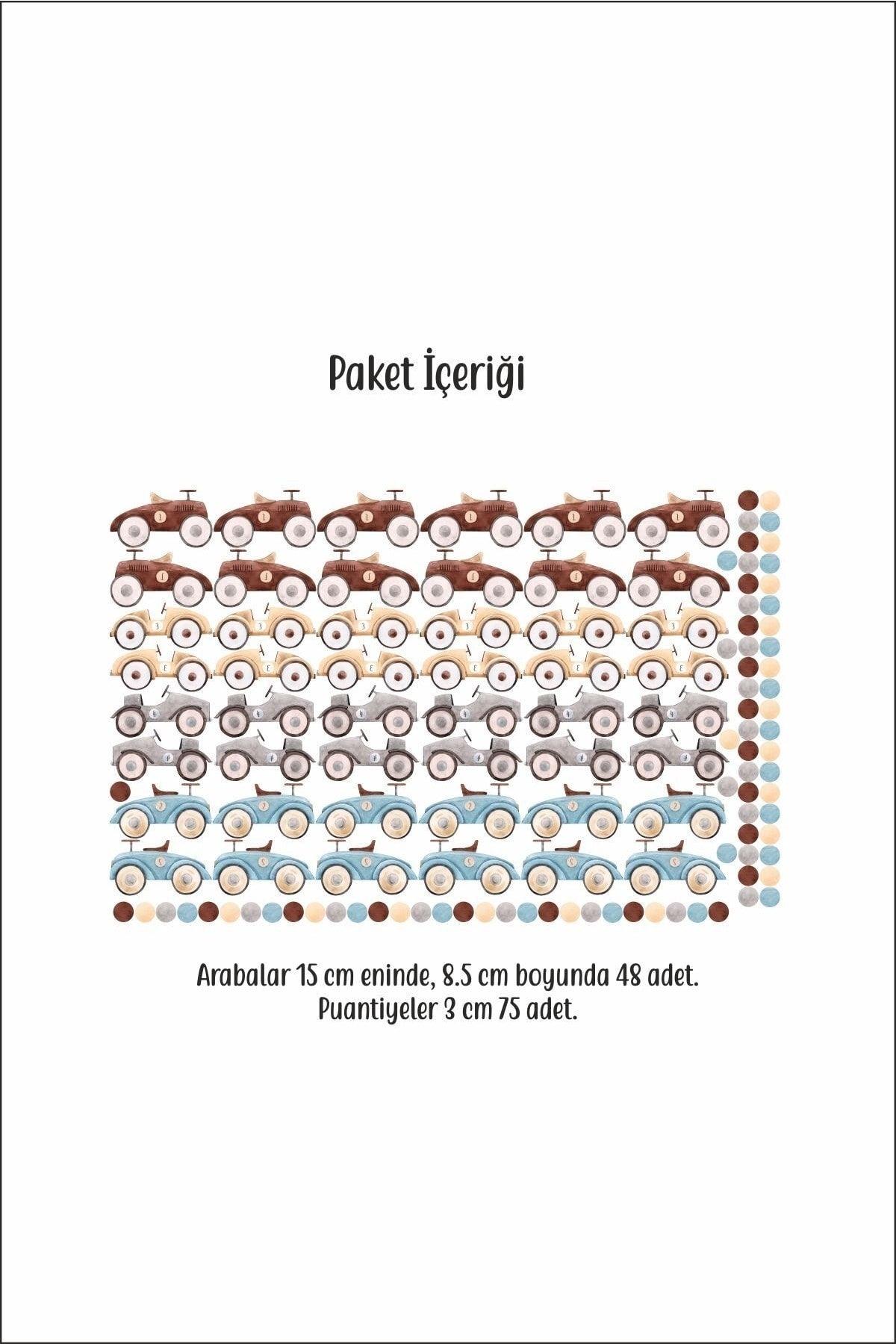 Набор наклеек на стену для детской комнаты в стиле ретро с автомобилями и горошек