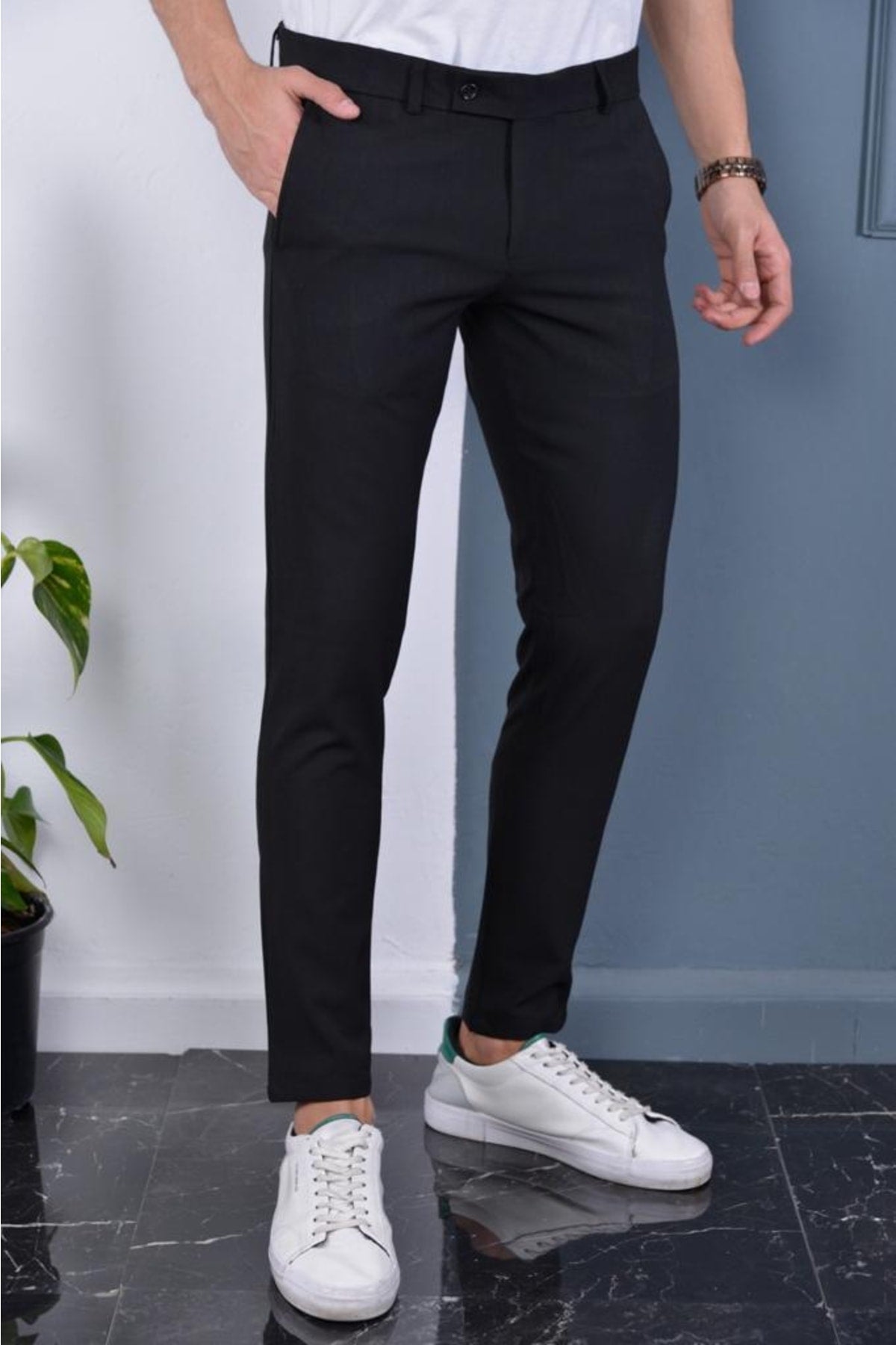 Мужские черные брюки итальянского качества из гибкой лайкры длиной до щиколотки
