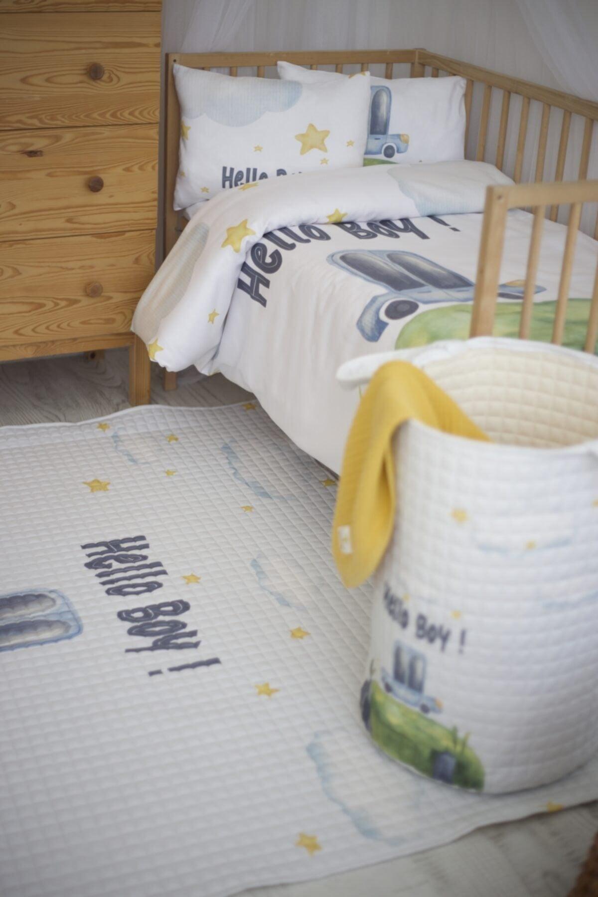 Детская игрушка из органического хлопка и корзина для белья - автомобильная и звездная тематика