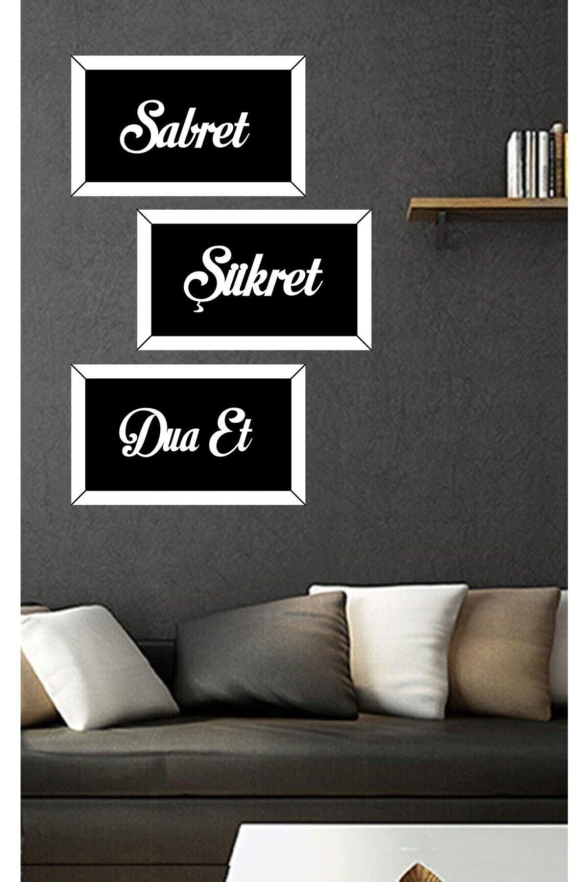Терпение, благодарность, молитва, набор из 3 деревянных белых краев, черный пол