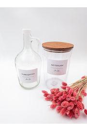 Жесткая пластиковая банка для стирального порошка с деревянной вакуумной крышкой 2300 мл и бутылка для смягчителя 1,5 л (стекло)