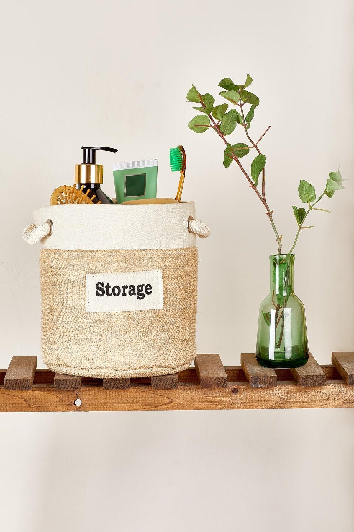 Цилиндрическая корзина из джута в кремовую полоску — маленькая
