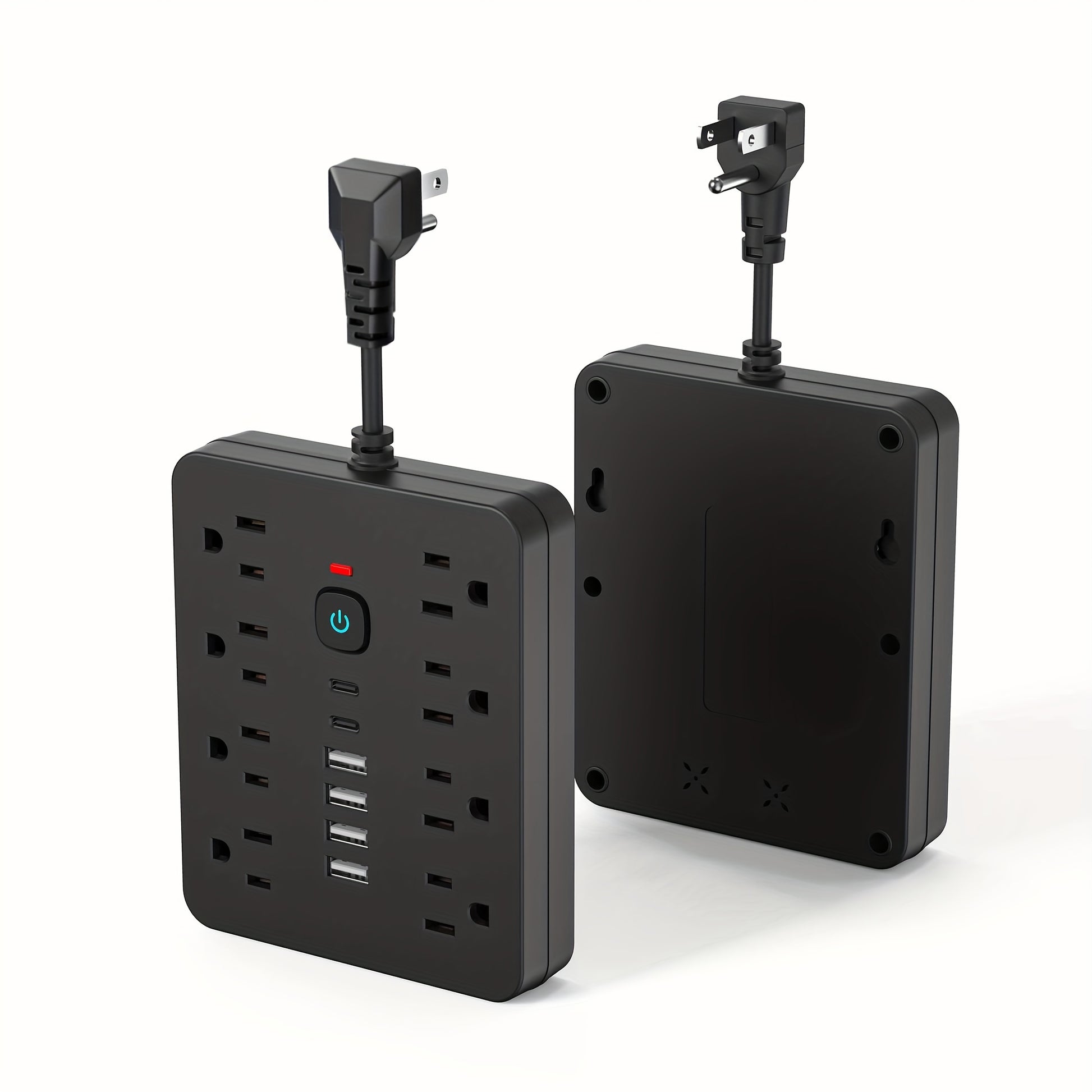 1pc 14-In-1 Power Strip With Overload Protection And Switch, 8 AC Outlets, 4 USB-A Ports And 2 Type-C Adapters - Multi Plug Wall Surge Protector, Ldeal For Office, Home, And Travel, White And Black