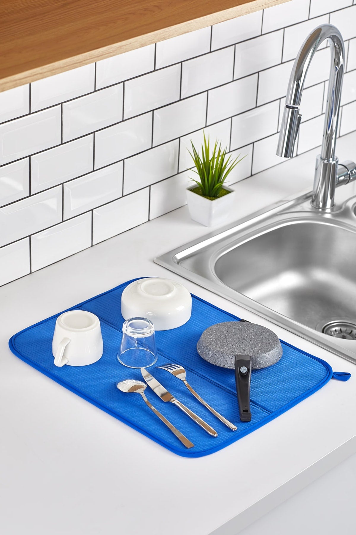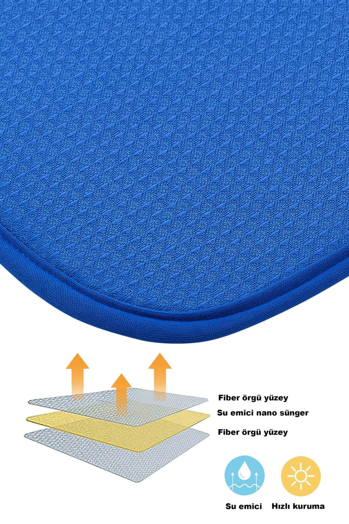 Homelka dish drying cover blue colornanofiber design ultra absorbent dish matcan be used on countertops or over the sink it absorbs water quickly and dries by itself thanks to its ultra-absorbent feature after rinsing. can be used on both sides. water absorption capacity up to 4 times its weight can be washed at low degrees, drying is not recommended.2' it can be folded to the floor, can also be used in its folded form. it saves space with its hanging apparatus. product dimension: 45cm x 36cm Improved version for clearer understanding and better search visibility. Suitable for users seeking detailed and reliable product information.