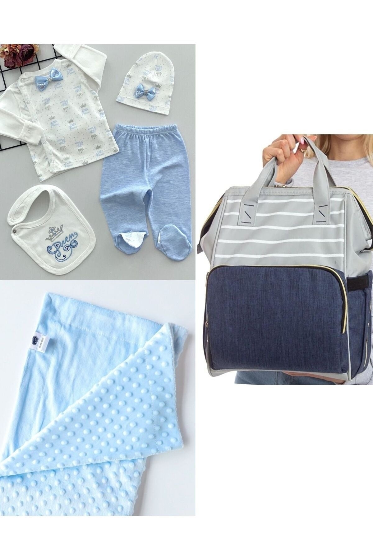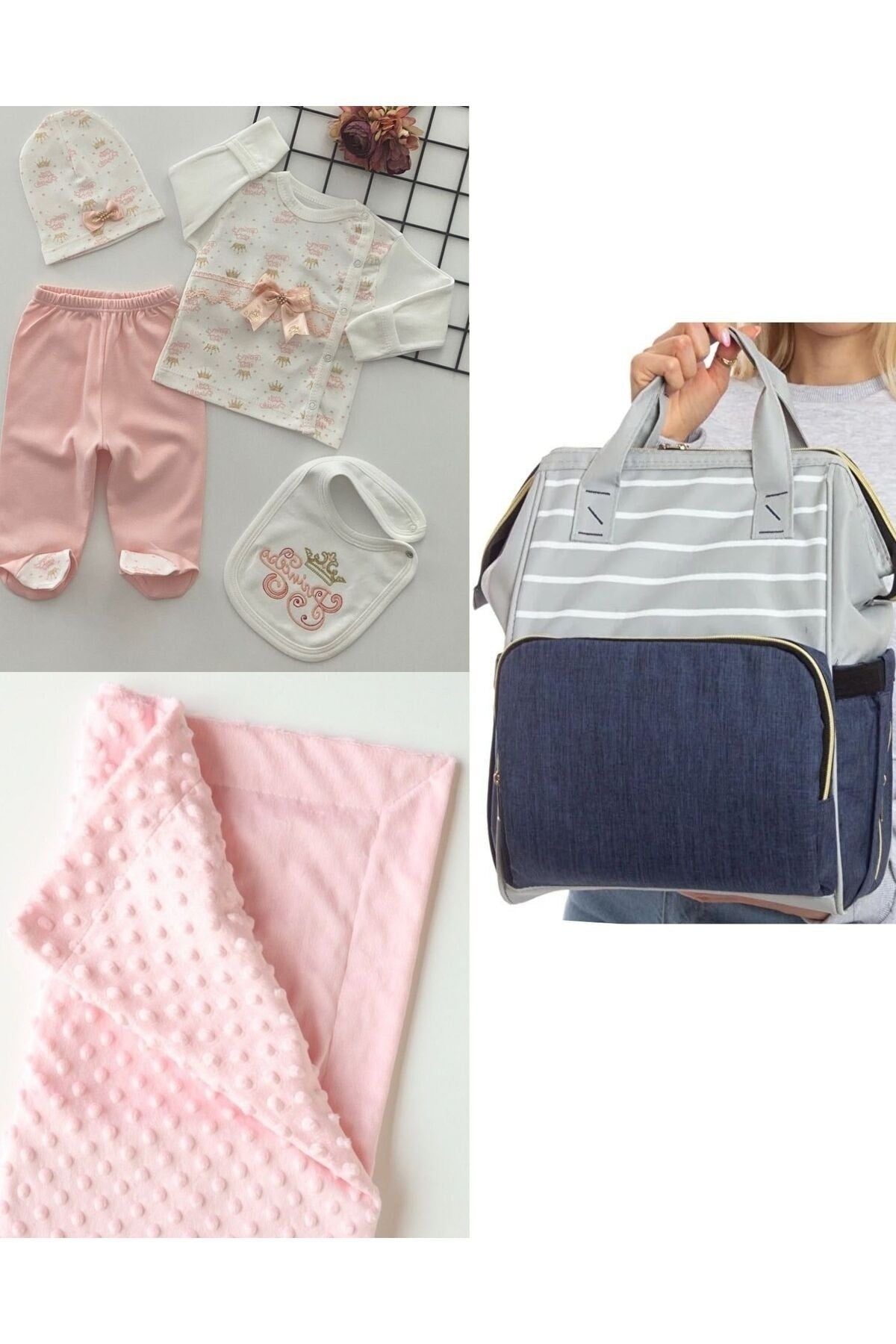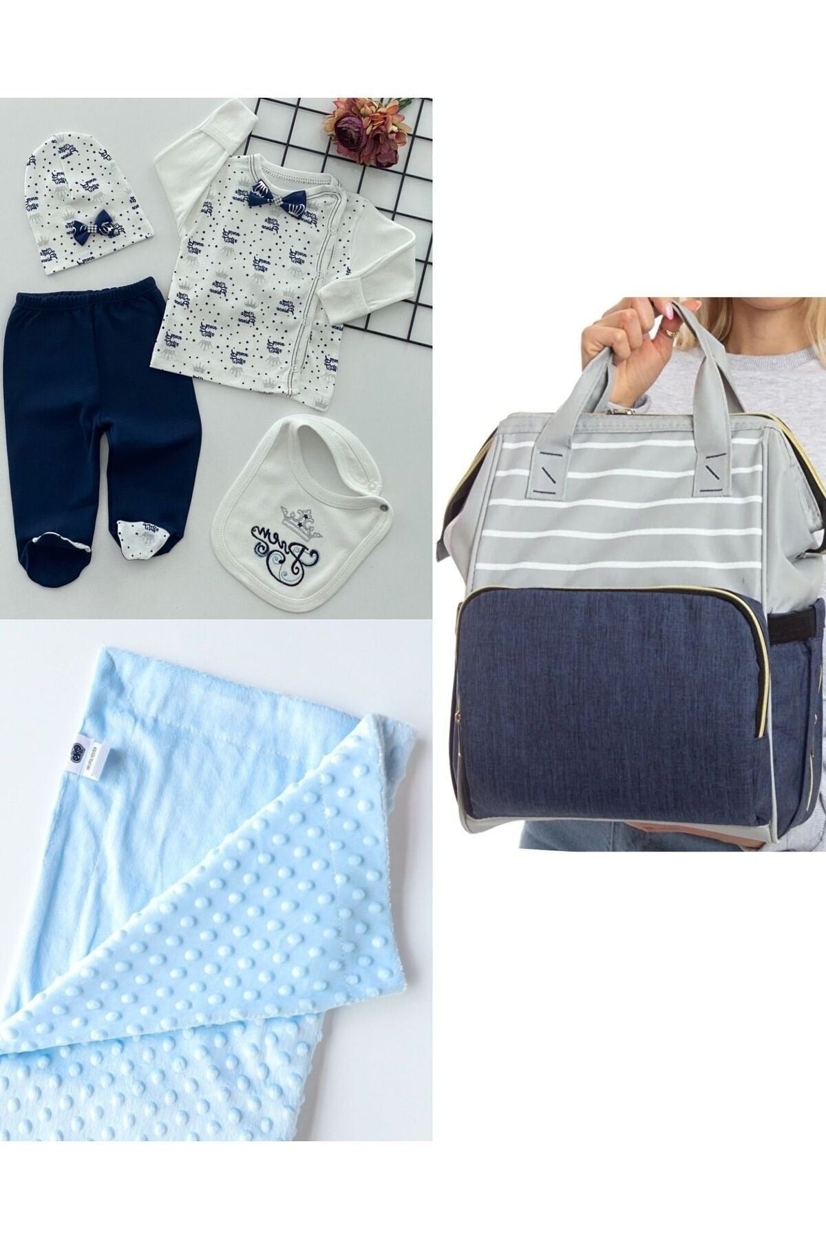 Functional Mother Baby Care Backpack, 100% Cotton Hospital Outlet And Chickpea Blanket Set