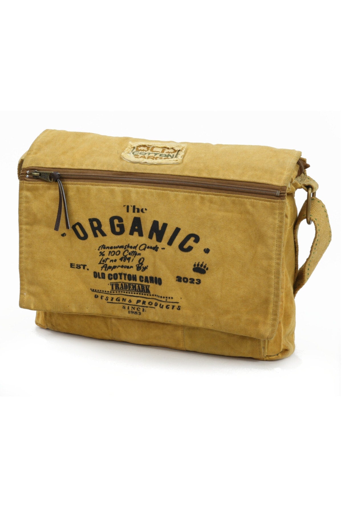 Old Cotton Loose Canvas Shoulder Messenger Mustard Yellow Laptop School Travel Casual Vintage Cotton Bag