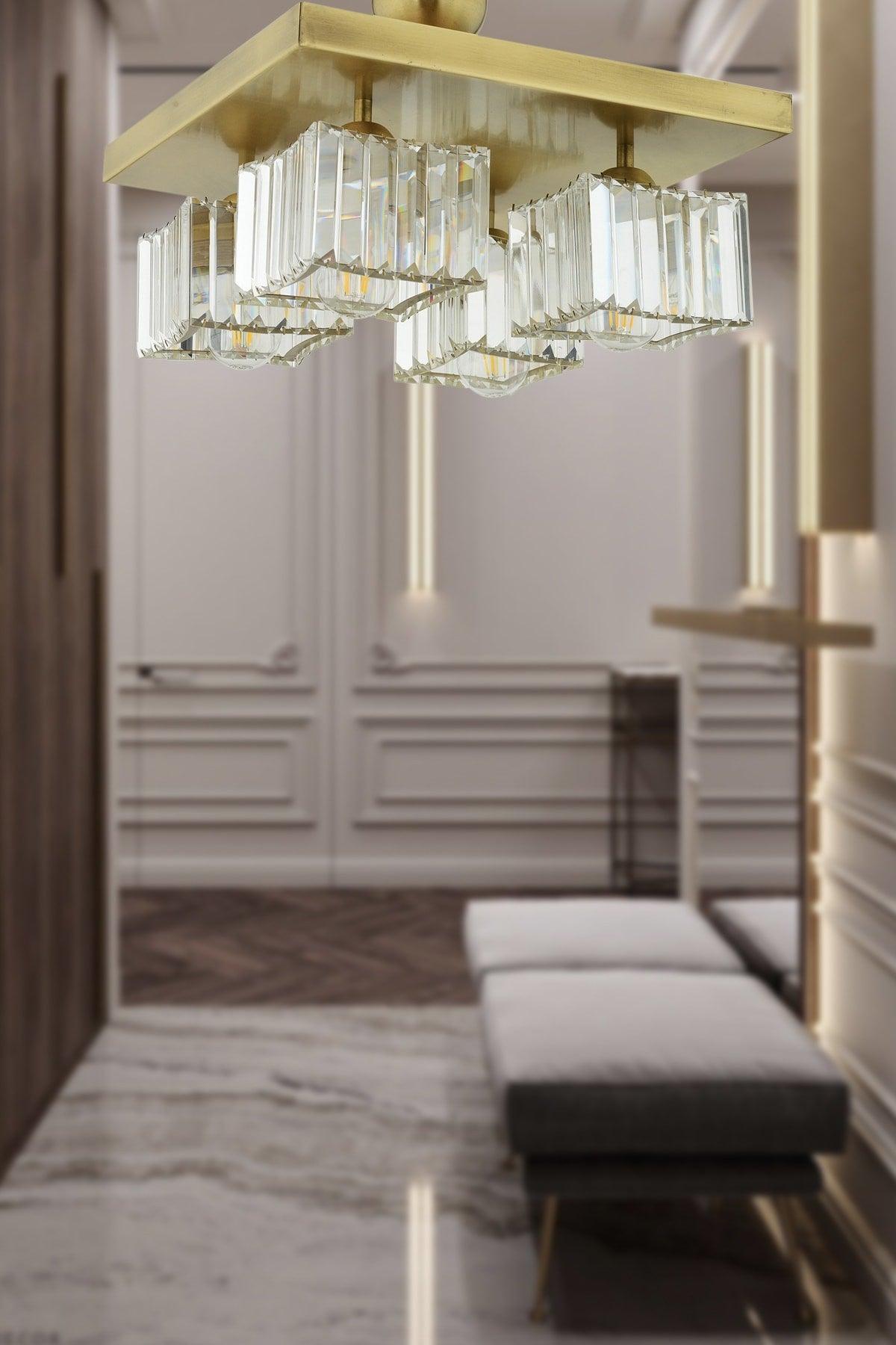 Rivia 4 Lü Eskime Plafonyer Crystal Stone Современный дизайн Люстра Kristal Hall