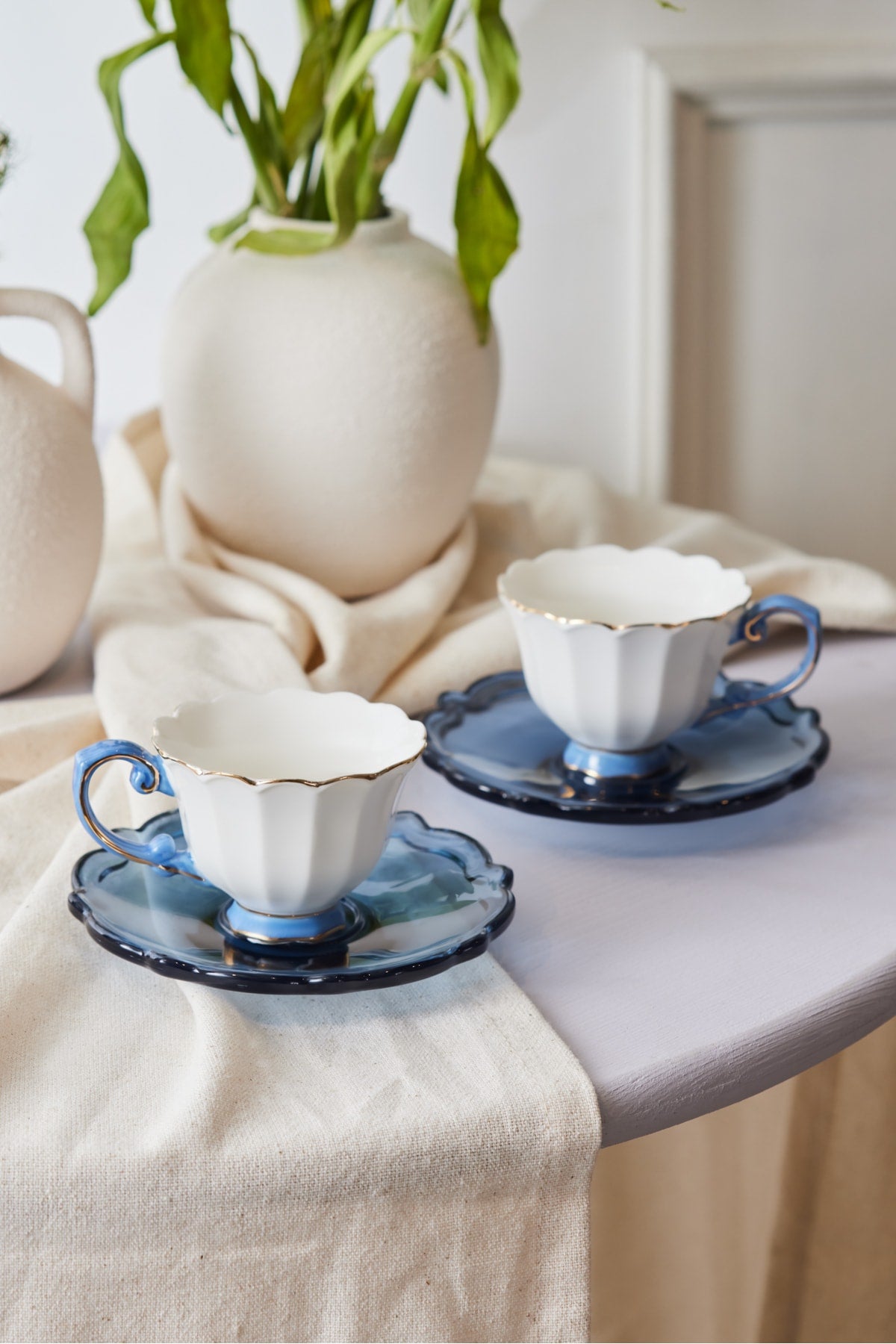 Karaca samo 2 person dark blue coffee cup set with acrylic saucer 90 ml set content: 2 coffee cups 90 ml 2 cup saucersmaterial: new bone Improved version for clearer understanding and better search visibility. Suitable for users seeking detailed and reliable product information.