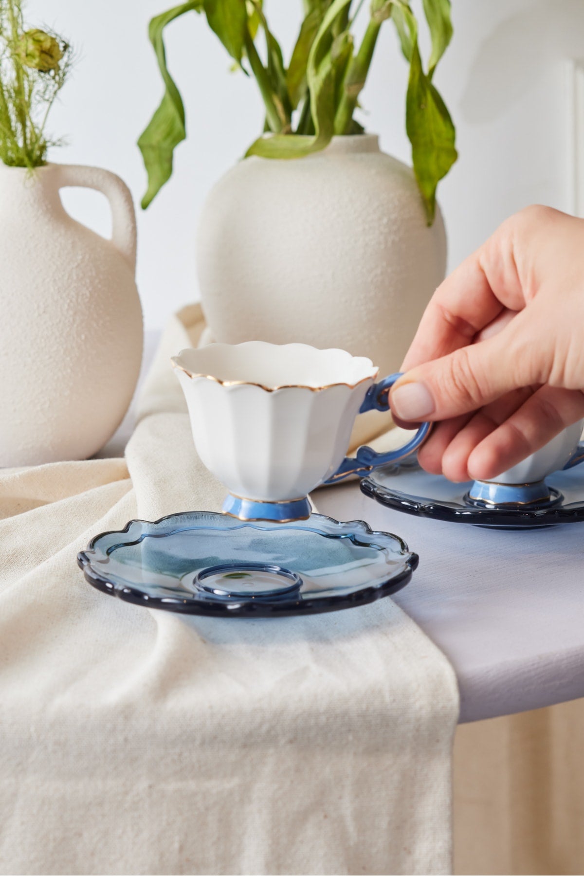 Samo 2 Person Dark Blue Coffee Cup Set With Acrylic Saucer 90 Ml