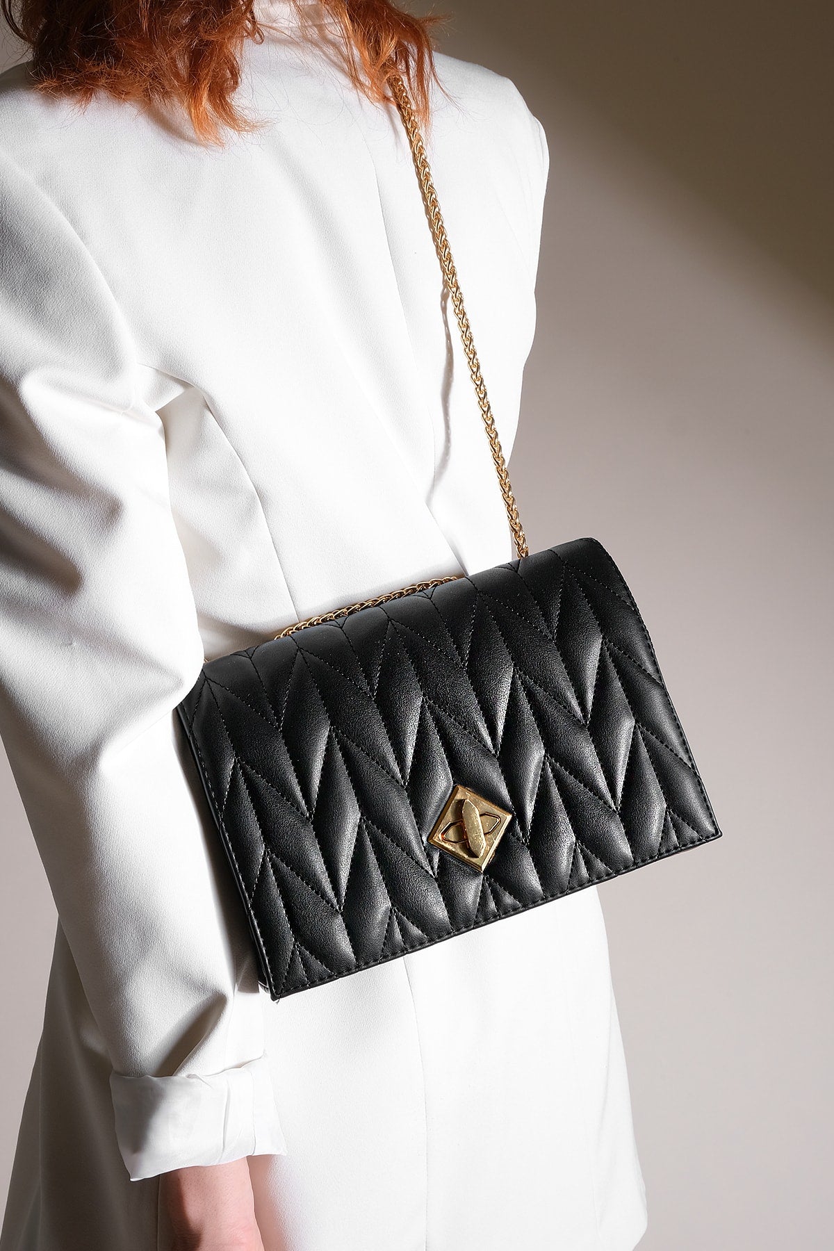 Women'S Gold Color Chain Shoulder Bag Delbin Black