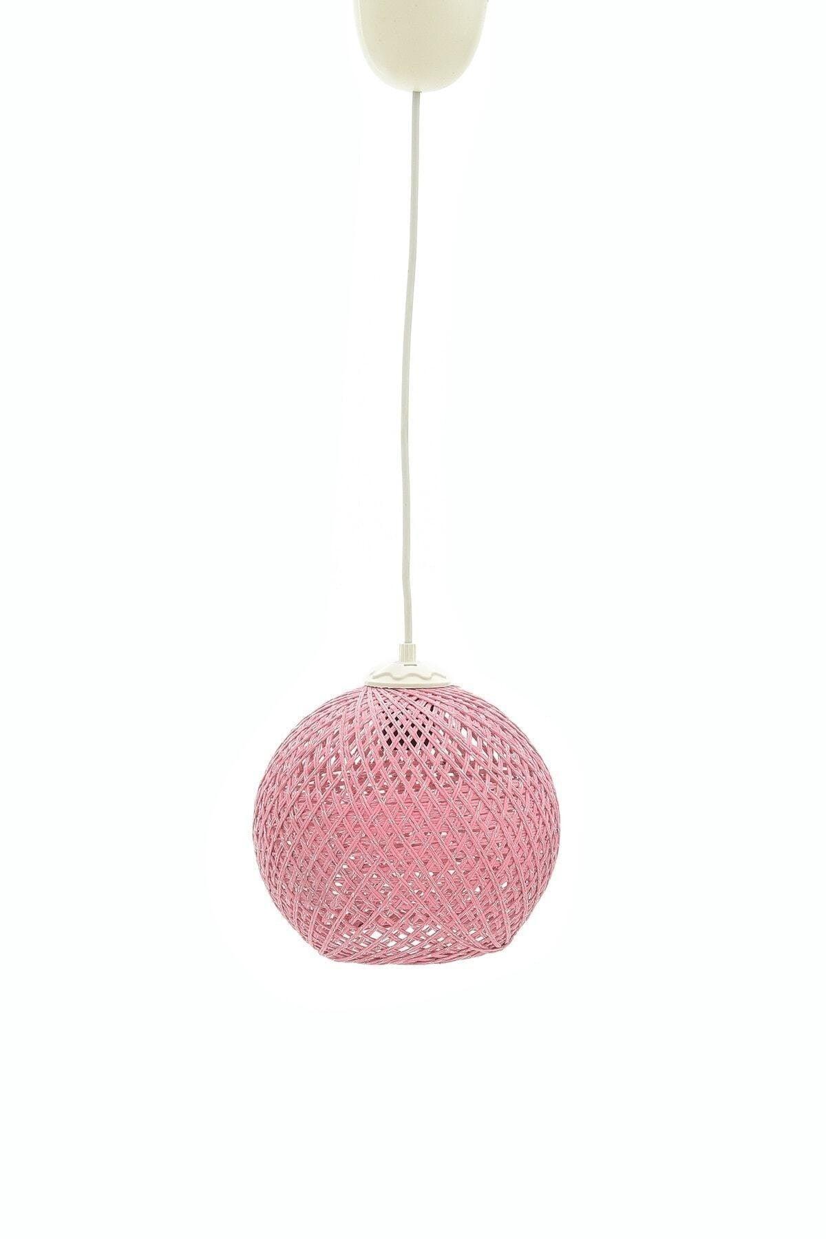 Balle pembe kolye top avizesi beyaz kablo