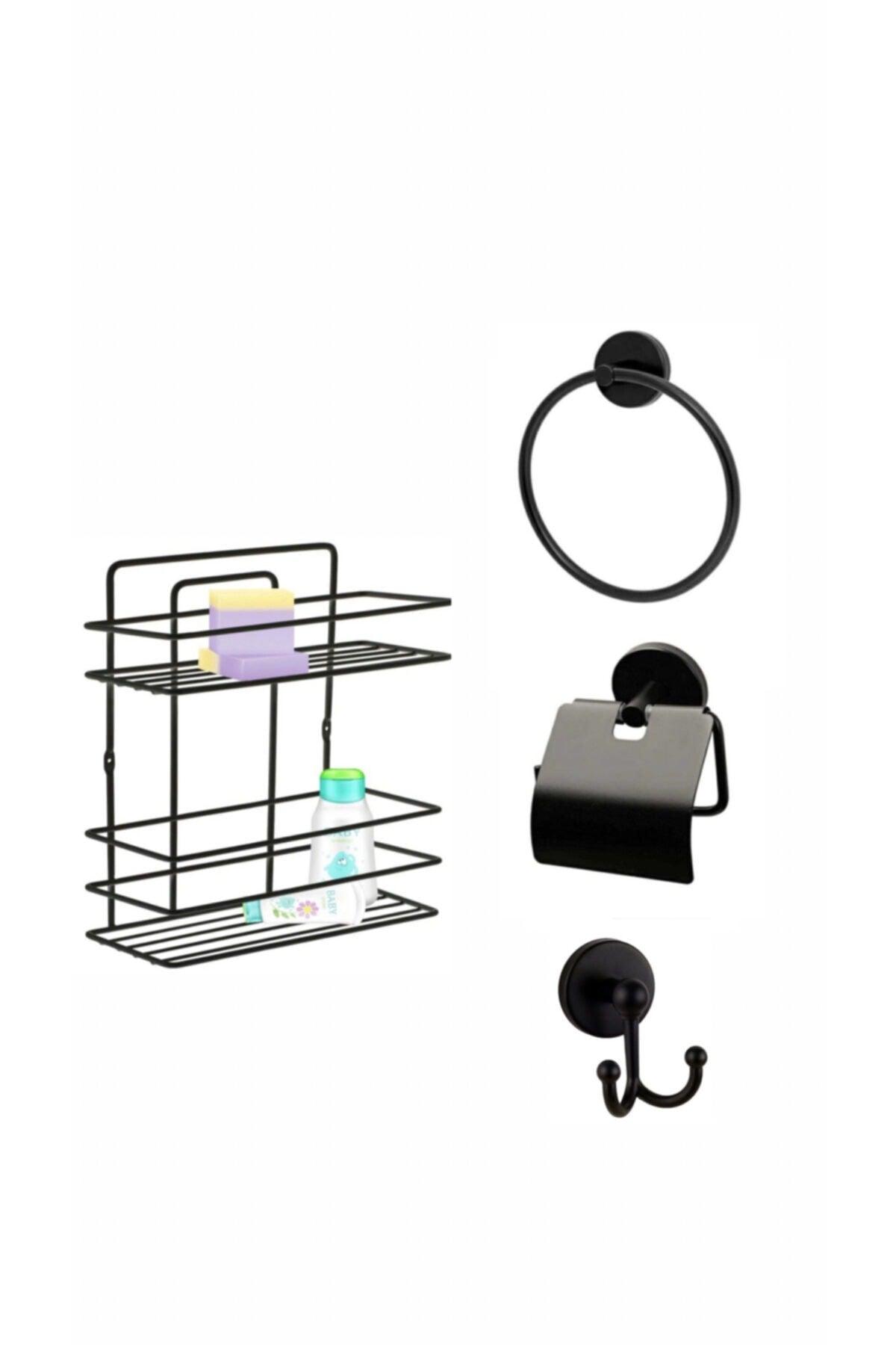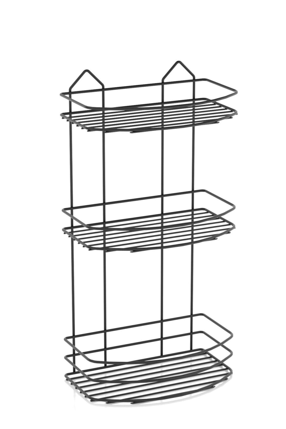 Üç Seviyeli Banyo Duş Rafı Mattschwarz BK009