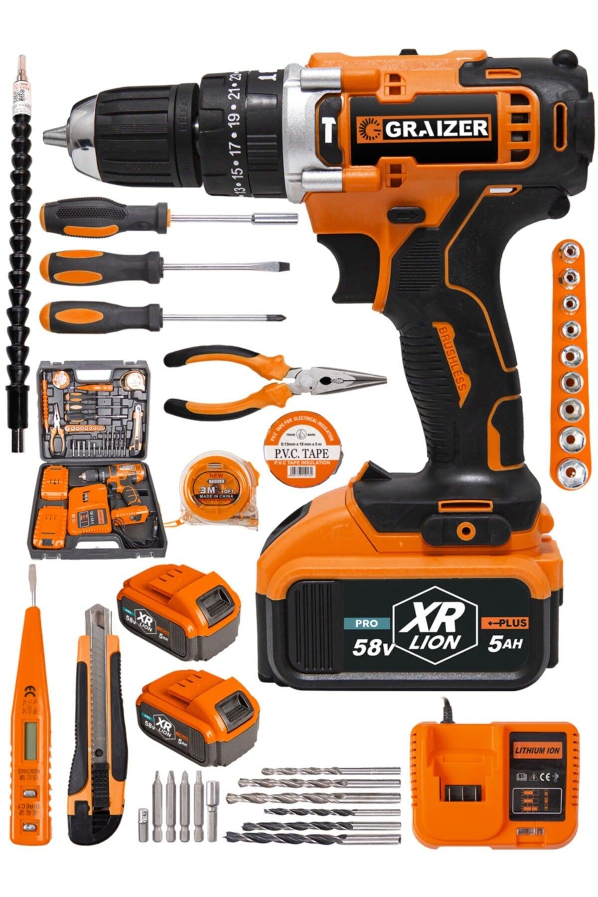 Alman teknolojisi 58V 5AH Blow Çift Pil Pil Delme Tornavida 32 PC. Hobi seti