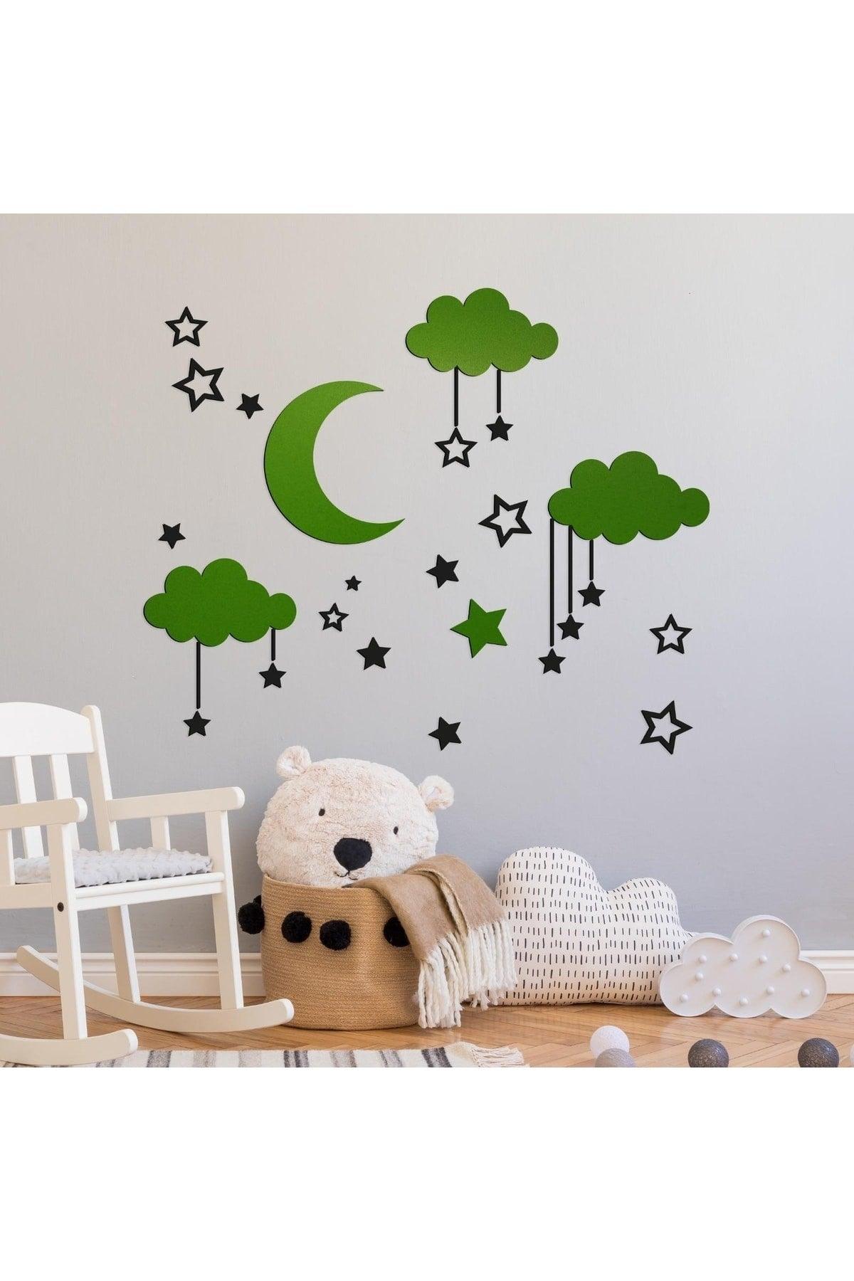 Wooden Sky Composition Wall Decor For Baby Room Green-black - Swordslife